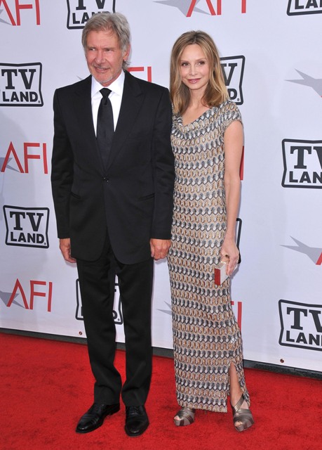 With his earring and his super styled hair, Harrison Ford is kind of making my life right now. Ford arrived at the AFI event to honour Mike Nichols last night in LA with Calista Flockhart. It’s been 8 years for these two. And now supposedly engaged. Did you know they’re second on the list of top earning couples in Hollywood behind only Beysus and Jay-Z and ahead of the Brange? Most of it comes from Indiana Jones. But still, Flockhart’s per episode rate on Brothers & Sisters is probably enormous. At least her attitude reflects it. This broad is HIGH maintenance. I mean, she works with Sally Field. And Sally Field is the ultimate professional and behaves like an intern, willing, enthusiastic, gracious. Flockhart? She’s not easy, not at all. Which could be why she and prickly Ford get along so well.
