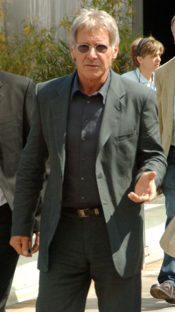 He was wearing a dark suit and makeup. A very handsome man. Harrison Ford is still very much Hans Solo. Oh and as for how the movie is… it’s good. Not great, but good enough. You will not hate.