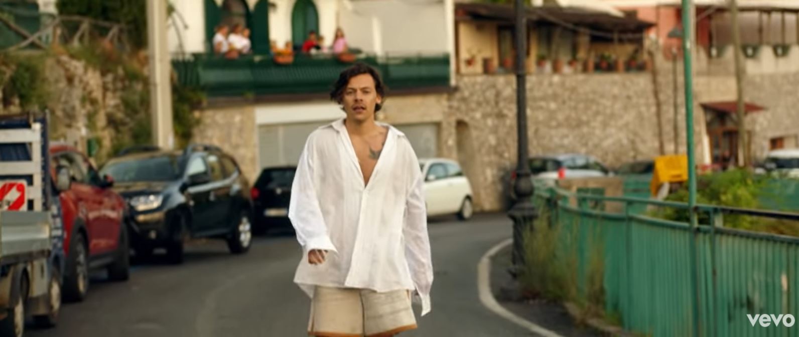 Harry Styles have been waiting for the “Golden” video to drop for weeks now. Every few days or so it’s trending on Twitter because they think it’s coming, only to be disappointed that it didn’t. And now, finally, “Golden” is here. When I posted about the anticipation a couple of weeks ago, I wrote that “Golden” is a great driving song and indeed we see Harry driving in his convertible, hair blowing in the wind, through the video. But mostly he’s running. He’s running through Italy, he’s showing off his tan, he’s smiling boyishly, he’s flirting, he’s flying…