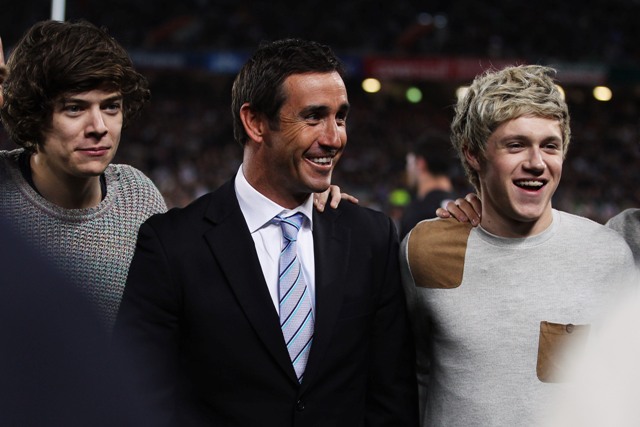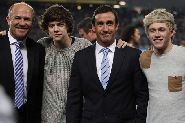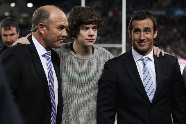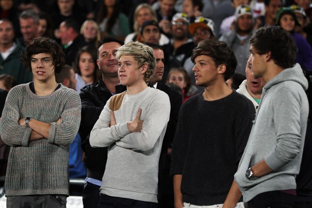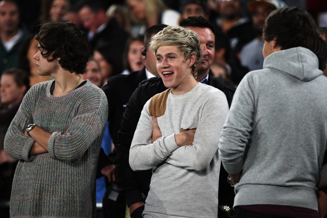 Attached - some photos of One Direction, but mostly Harry, at a rugby match in Auckland today.