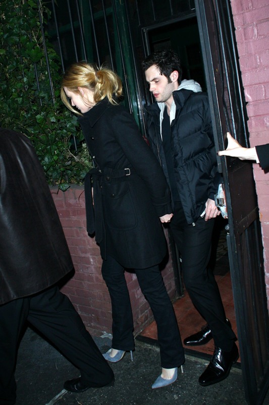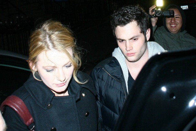 Anyway, boring Blake and her boyfriend Penn Badgley were spotted leaving the Waverly Inn with Weinstein a few nights ago. Last night it was on to Letterman. She arrived casual in a trench, left in a hot pink/purple one shoulder showing off those impossibly long legs. And still… even in a dress like this, Blake Lively puts me to sleep.