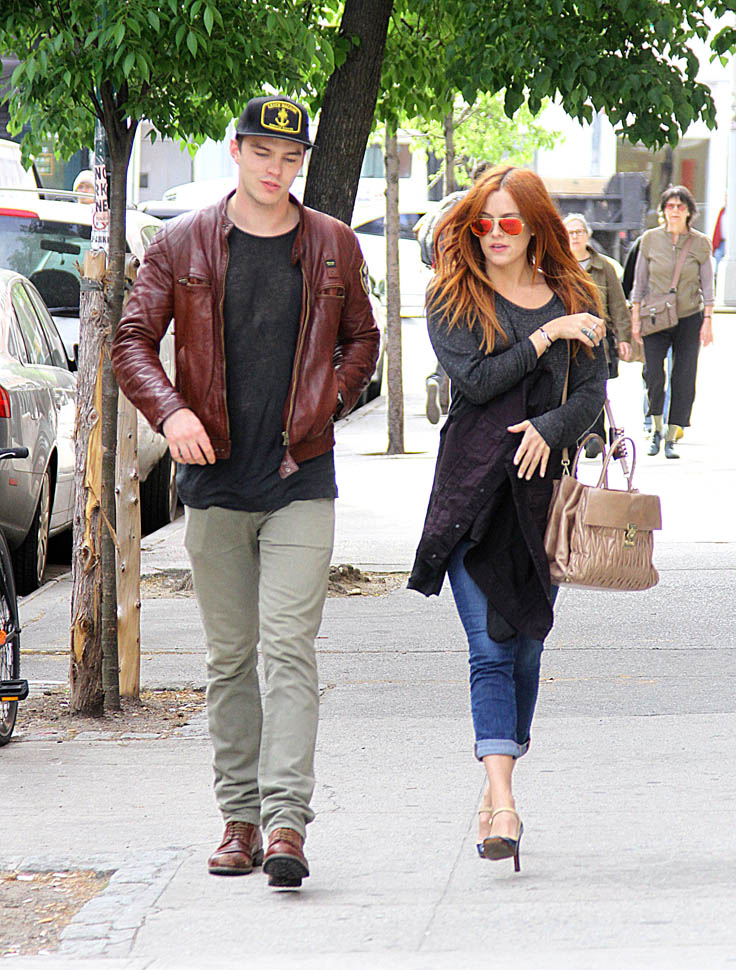 And I wrote about that in April (article is here) when she was acting the fool in Paris in front of photographers. She and Nicholas split up the first time because he didn’t want to deal with her spotlight. When they got back together, they’d been shooting X-Men: Days Of Future Past in Montreal, away from the drama, quietly spending a summer together without too much Hollywood intrusion. That can’t last forever though.