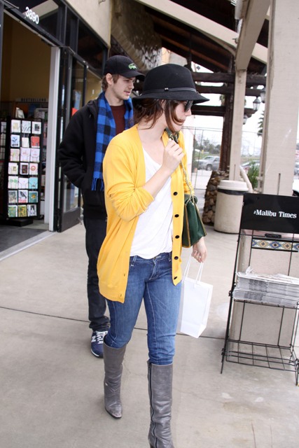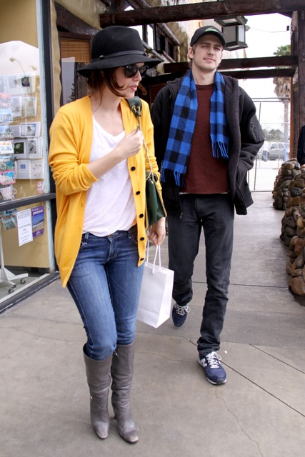 Rachel Bilson and her betrothed Hayden Christensen spotted in Malibu yesterday after lunch. His legs look skinnier than hers. And she’s TINY. Ew.