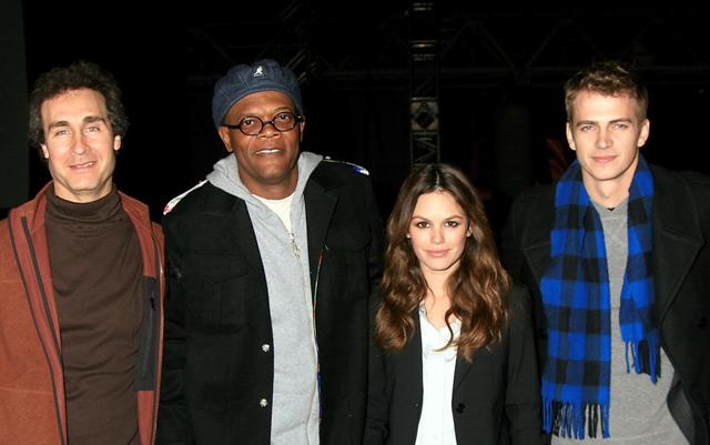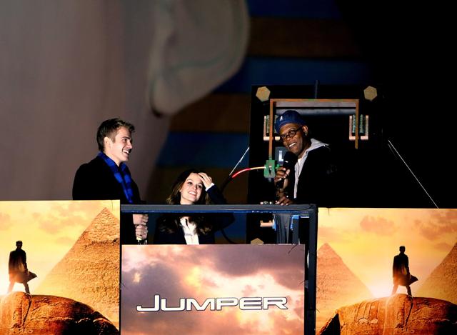 Hayden, Rachel, and Sam Jackson showed up in Vegas at the weekend to premiere Jumper – no, not the movie, but the movie trailer. A TRAILER! It’s overkill, yes…but it’s also very necessary.