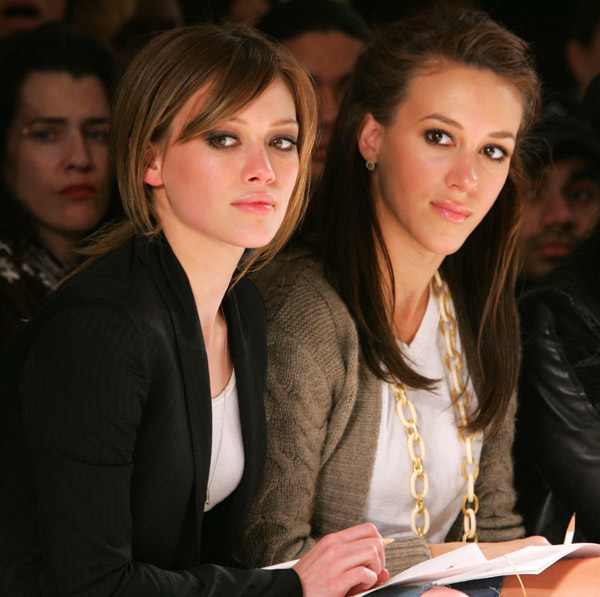 From JJB of the two during LA Fashion Week. Now I"m not one to talk about noses since mine is so hawkish it"s about to fly away but I just can"t help myself. Haylie Duff"s beak is quite possibly the longest thing I have ever seen. And you have to wonder - if the younger one was open to starvation and veneers and happy habits and a little nip tuck here and there, what"s stopping the older one from shaving down that honker? And is it just me or does her schnoz have strangely hypnotic powers? Like that guy with the mole in Austin Powers - I can"t take my eyes off the f&ckin" thing.