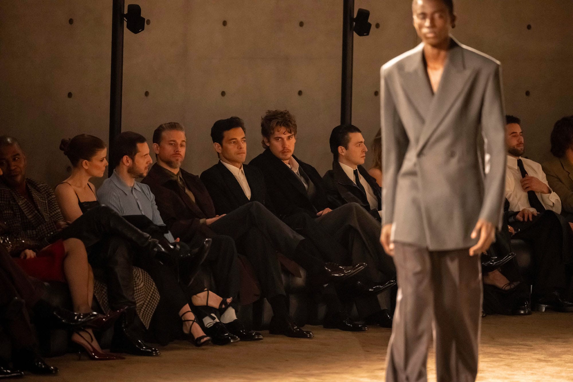Connor Storrie, Lee Chae-min, Charlie Hunnam, Rami Malek, François Arnaud, and Robbie G.K at the Saint Laurent Men's Fall/Winter 2026 fashion show as part of Paris Men's Fashion Week held at Bourse du Commerce on January 27, 2026 in Paris, France