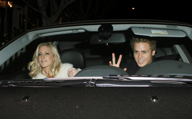 So Spencer pulls up in his ride, blasting her song from the stereo. HEIDI STARTS LIPSYNCHING for the paps! And dancing!