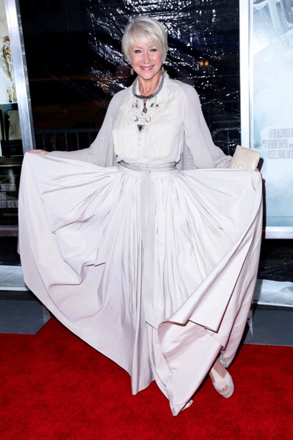 Here are Helen Mirren and Russell Brand at the premiere of Arthur last night and, certainly, while this little best friendship or whatever is probably being exploited a little but to sell the movie, I've no doubt it's rooted in something authentic. Wouldn't you want to hang out with them for a night?
