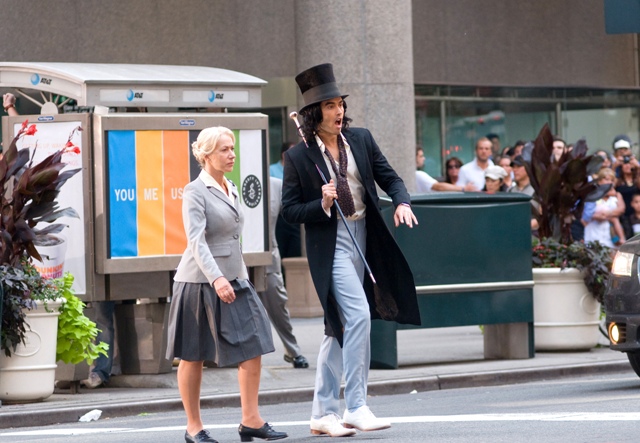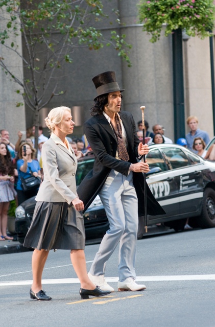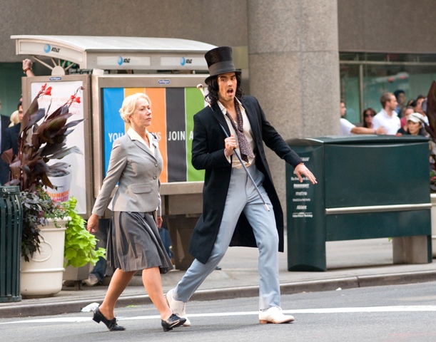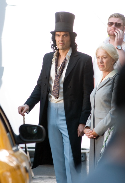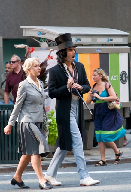 Have a look at Helen Mirren yesterday on the New York set of Arthur starring Russell Brand. She plays his nanny or something. Now that is not a Lara Flynn Boyle face, is it? I see age on that face. A LOT of age. And is age a bad thing?