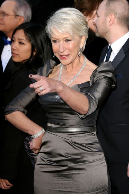 She’s perfect in charcoal with big-ish shoulders and an open neck. She’s so perfect she’s even perfect about her nail polish. Look at Helen Mirren’s nail polish! Now you’re wondering about Helen’s nail polish and wanting it for yourself. When would you have ever thought that you’d be wanting Helen Mirren’s nail polish? She keeps surprising you.