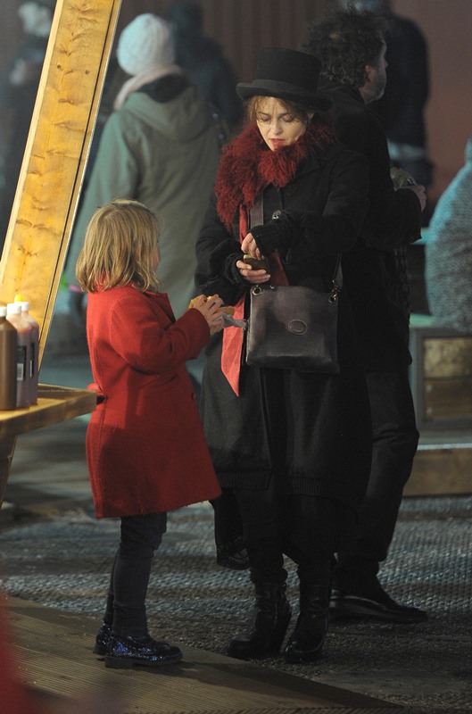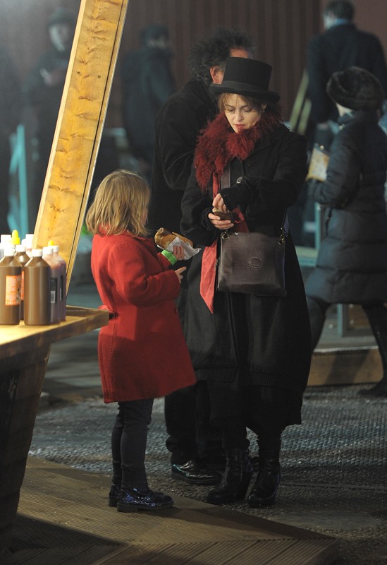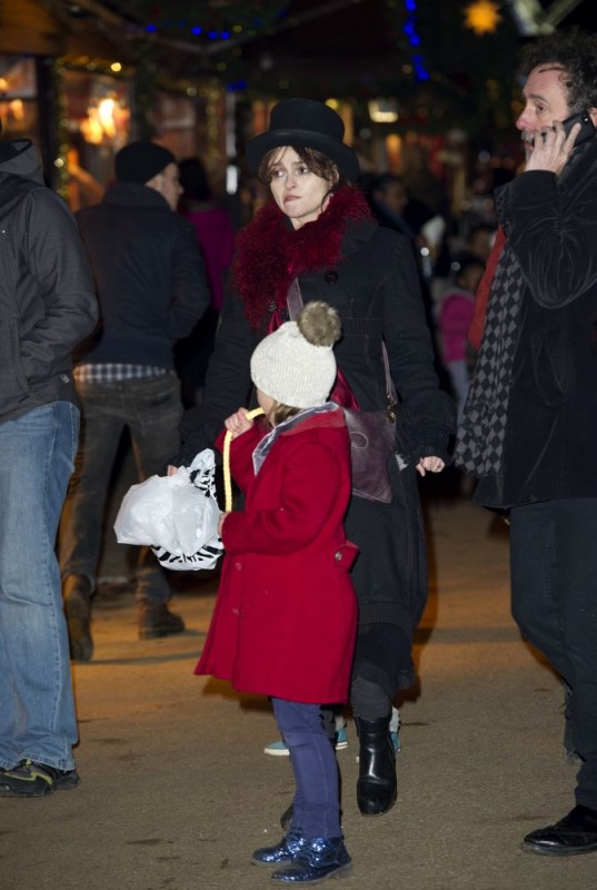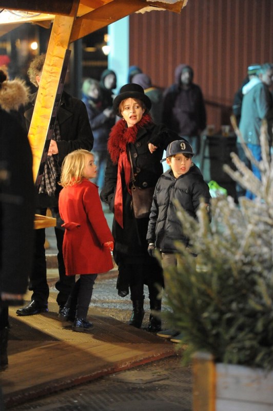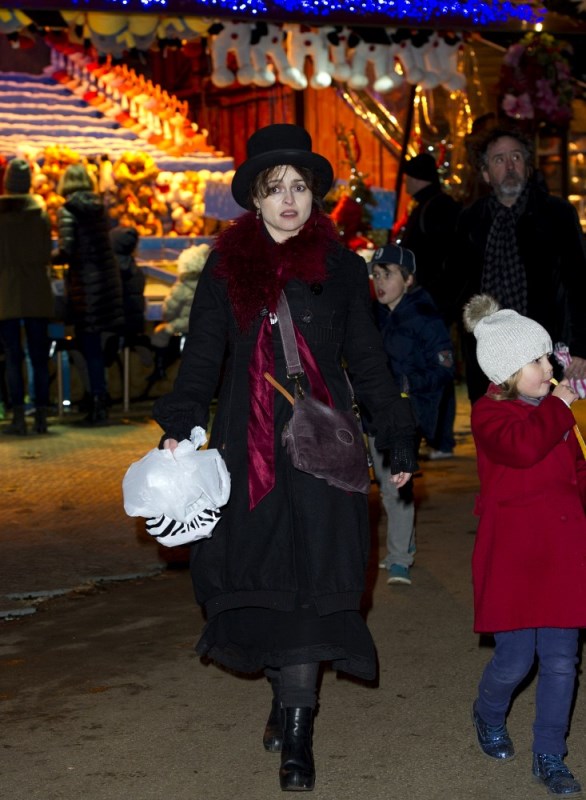 Helena Bonham Carter and Tim Burton took their kids to the Hyde Park Winter Wonderland launch last night in London. Why is it cracking me up that she’s wearing a top hat? There were rumours of trouble between HBC and Burton a few weeks ago because he was allegedly kissing another woman. But, as I wrote at the time, HBC wasn’t bothered. Not only because he denied it, but because their relationship and, really, her life too never seemed conventional anyway. Especially not now that we know about what happened between HBC, Emma Thompson, and Kenneth Branagh. And that has nothing to do with Harry Potter. I appreciate that they didn’t deal with the situation the way LeAnn Rhimes and Brandi Glanville keep dealing with theirs. It deprived us of some great gossip but they were able to retain their dignity. Pfft. Dignity. Who needs dignity?