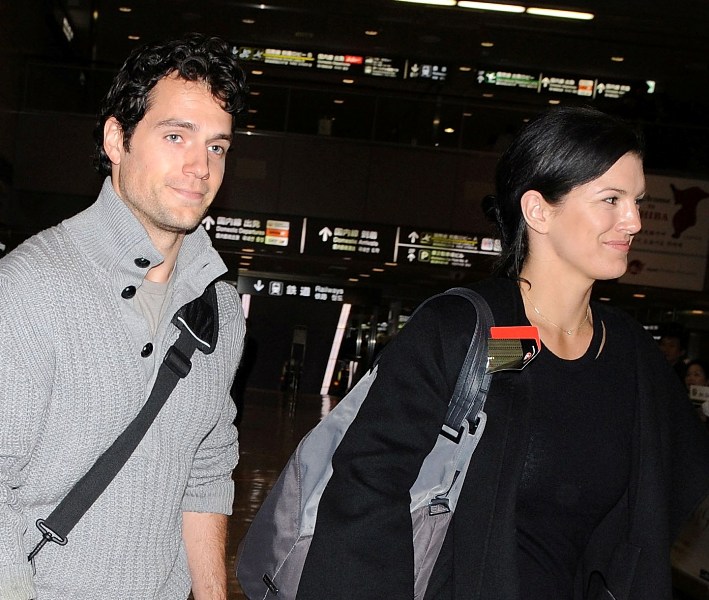 Gina Carano and her boyfriend Henry Cavill arrived in Tokyo yesterday. We’re now just 10 weeks out from the Man Of Steel release. Which means they’ll be pushing Cavill out heavy soon. And still, amazingly, they haven’t forced him to not have a girlfriend. Please don’t push him to not have a girlfriend, especially this girlfriend. I like this girlfriend.
