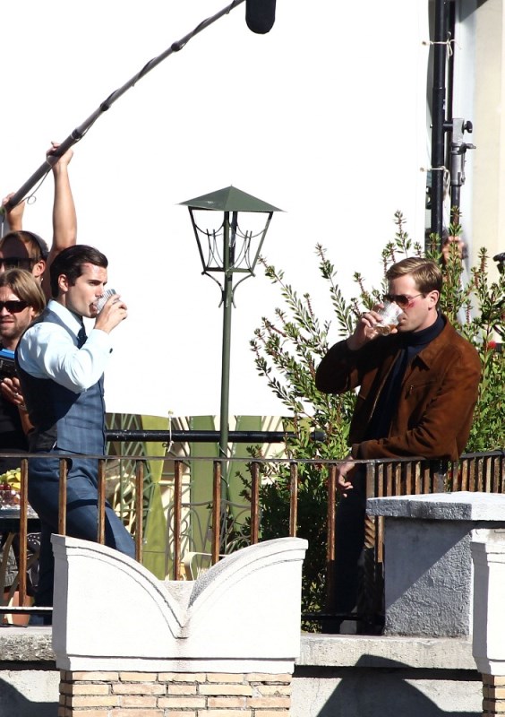 So. Here they are together shooting The Man From U.N.C.L.E. in Rome. Their hair is combed. They’re tall and buff. They’re drinking scotch. It’s a handsome combination. But is it a charismatic combination? Or… are you more interested in Hugh Grant?