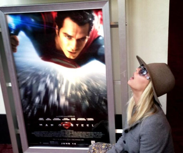 -June 14, Los Angeles. Kaley Cuoco tweets this photo of herself gazing adoringly at Cavill’s poster, encouraging her over million followers to see Man Of Steel.