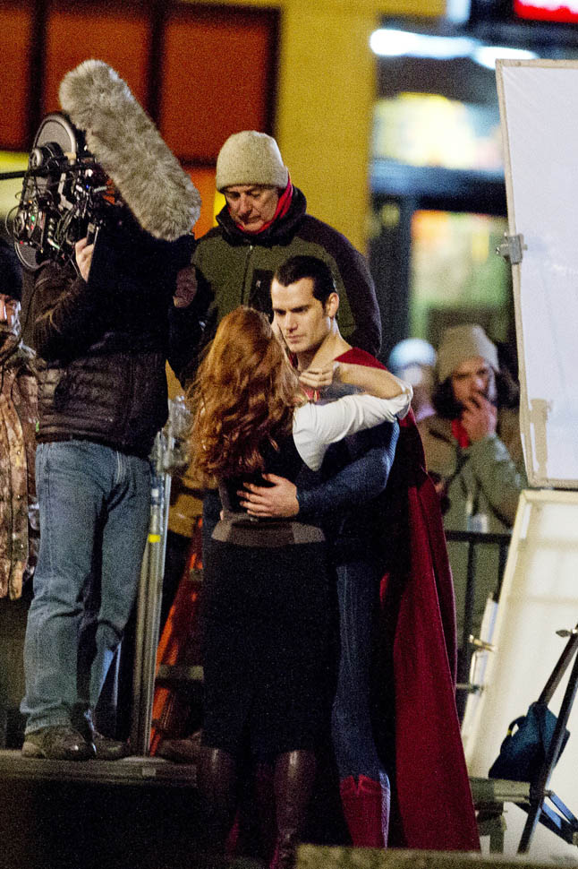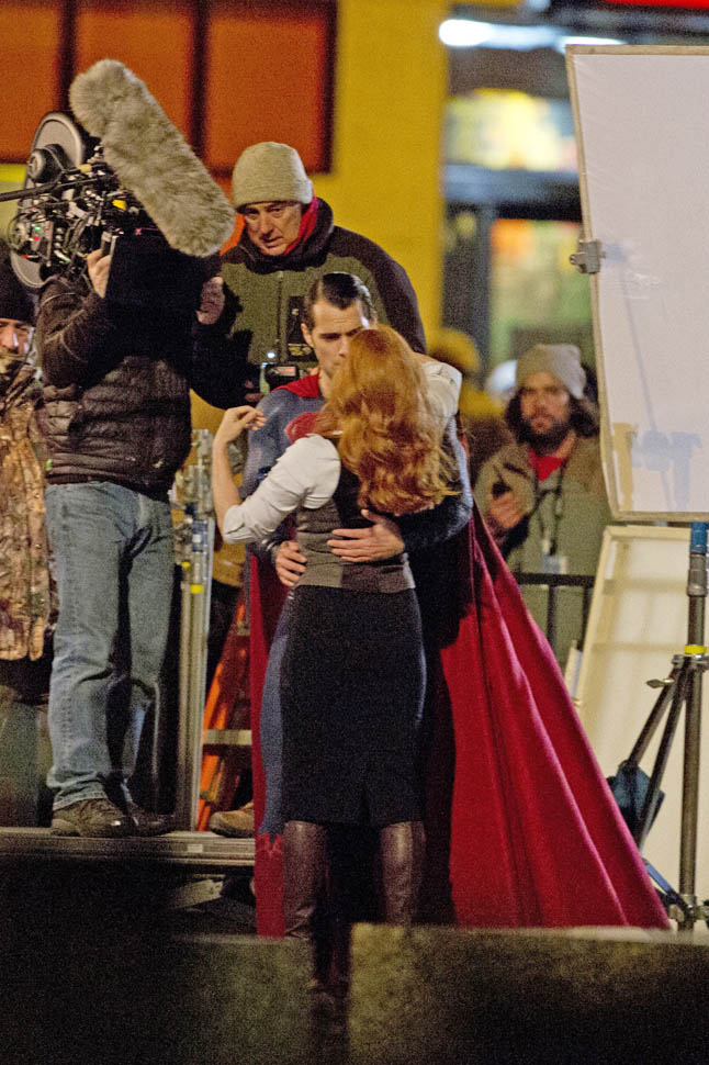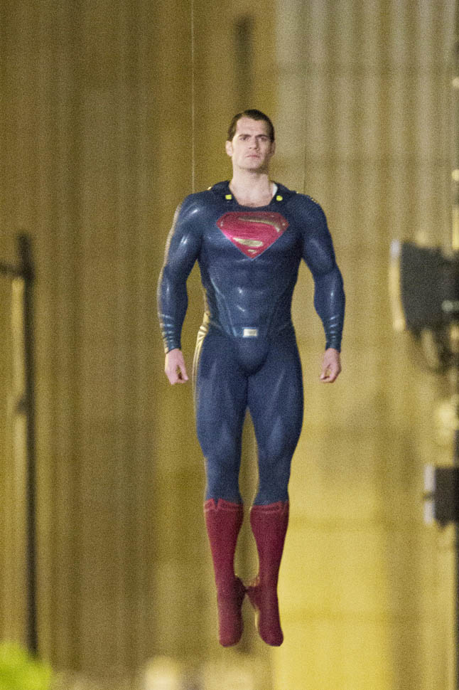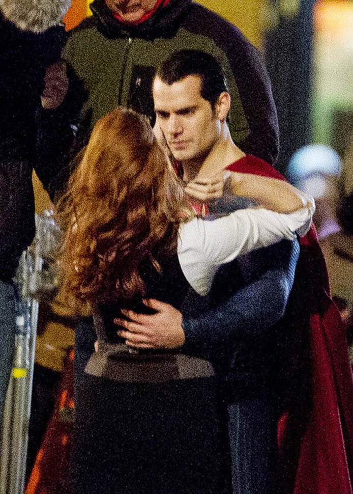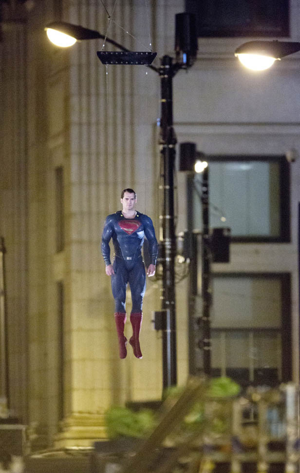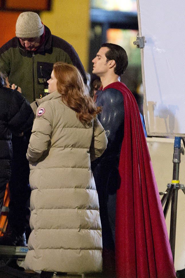 But please, don’t be mad. Let me make it up to you. I just bought these photos of Henry Cavill, wearing his Superman suit, shooting Batfleck vs Superman in Chicago on Saturday night with Amy Adams, and bulging in the right places.