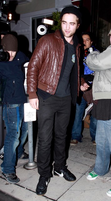 Though he’s a marked manchild, Robert Pattinson has managed to steer clear of the skank brigade so far. Lindsay Lohan has yet to set her extensions all over him… but there’s time. And he lives in LA. And last night he went out in LA. He went somewhere the paps camp out. After over a week out of the spotlight, perhaps he was missing them. Maybe he does belong in LA after all?