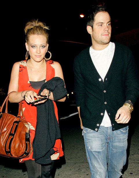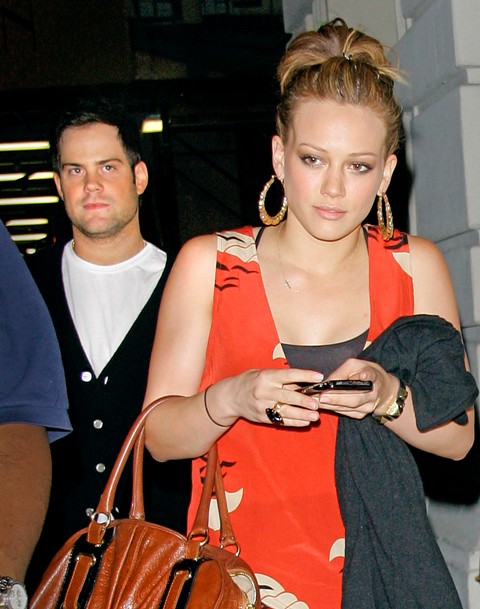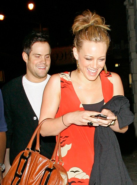 Hilary Duff and that hockey player still going strong. Here they are in NYC after dinner last night – she as usual is super cute with her ghetto fab earrings, he unfortunately appears to have a case of Ryan Phillippe’s Carb Face. Or is it just me? Cardigan needs some work too.