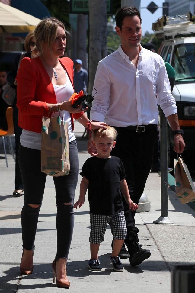 Here’s Hilary with Mike Comrie and their kid the other day. So, you know, Gwyneth and Chris aren’t the only ones who can consciously uncouple. In fact, I think Hilary did it first. She just didn’t name it.