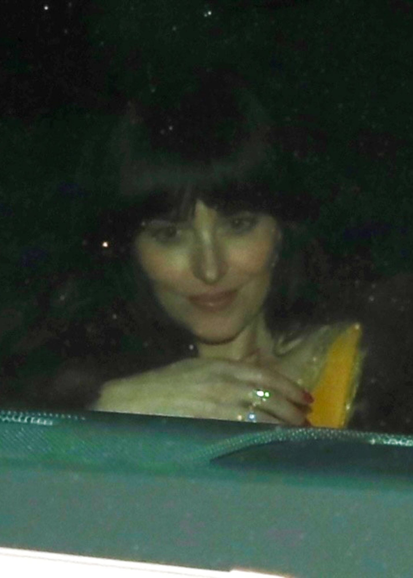 Here’s Dakota Johnson leaving a Golden Globes after party the other night.