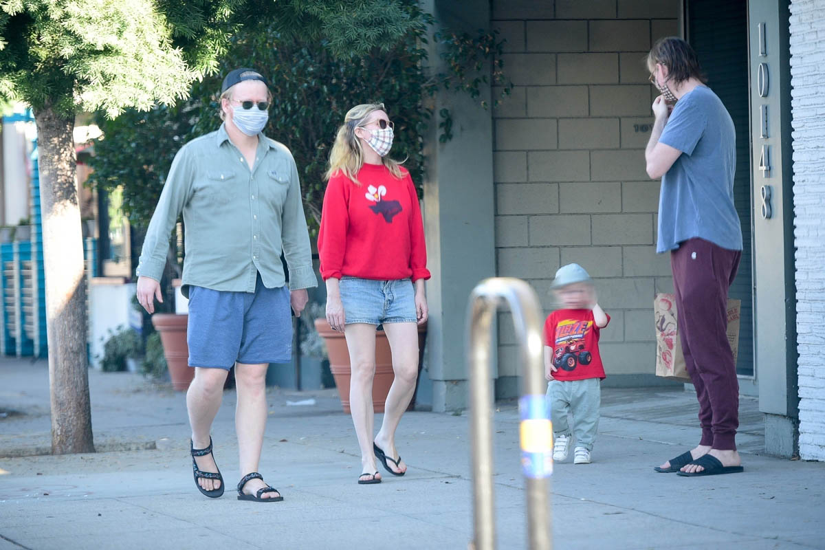 Like Kirsten Dunst and Jesse Plemons. Here they are out in LA yesterday with their son and responsibly wearing their masks. I love them. And not just because they’re masked. For both, really, it’s their body of work. Kiki’s work we’ve been familiar with for a long time because she’s been acting for a long time. And we know her from some classics: Interview With The Vampire, Little Women, Bring It On, The Virgin Suicides, Drop Dead Gorgeous, Spider-Man… MARIE ANTOINETTE! My God, there are so many. When she said last year that she’s underrated and unappreciated, she had a point. And if you haven’t watched her in On Becoming a God in Central Florida, well, now’s the time to binge it. She is so f-cking good.