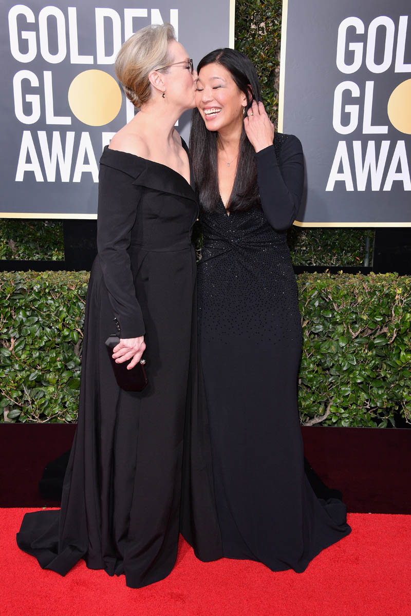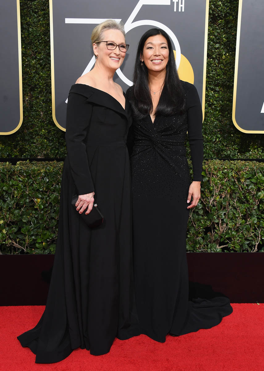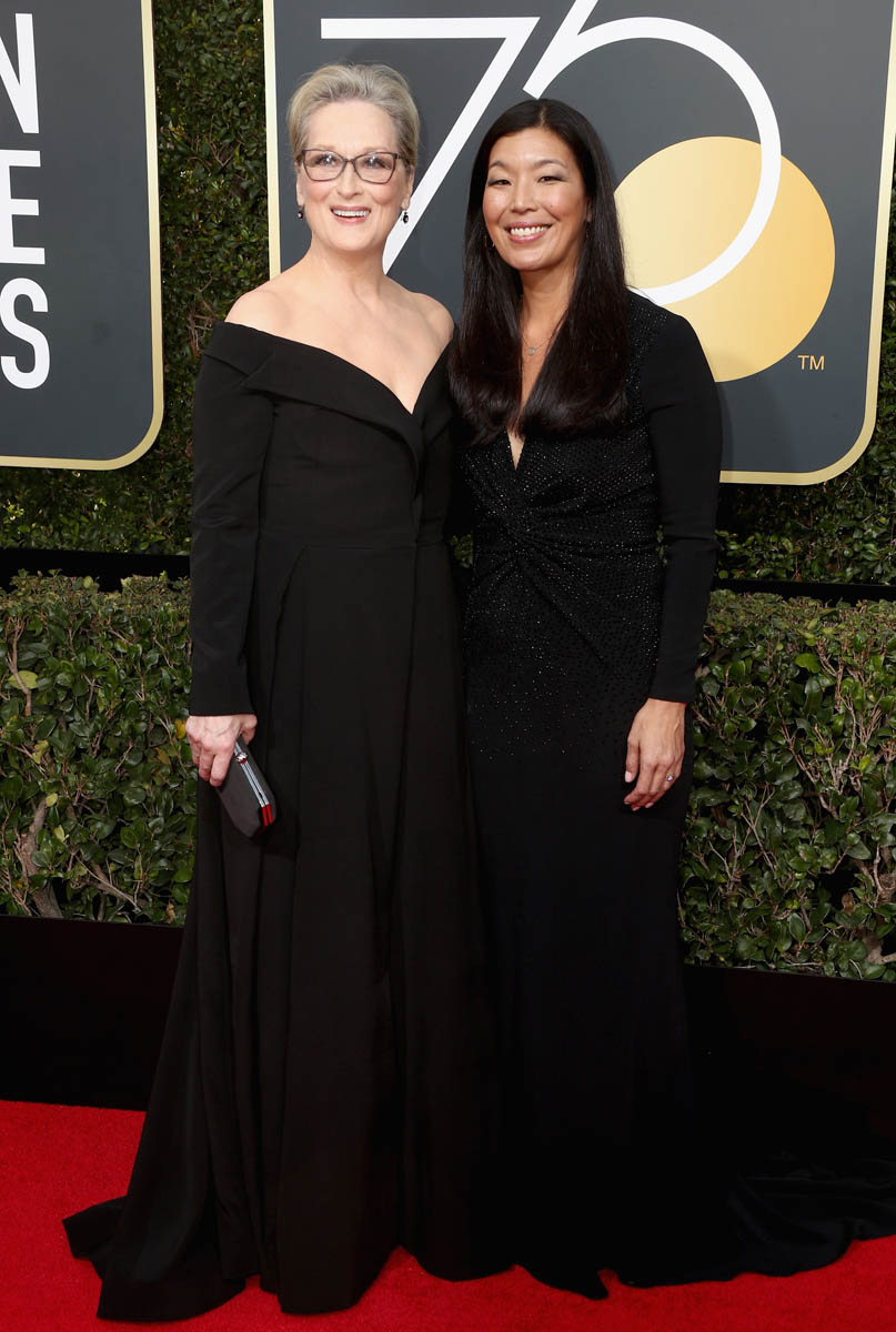 Last night, many of the biggest stars arrived muuuuuuch earlier than they normally do on the red carpet. As in two hours before the start of the show. They did it to honour the work of the many activists who were invited to accompany the celebrities down the red carpet. Meryl Streep, for example, was at the Golden Globes by 3pm PT/6pm ET. She was joined by Ai-Jen Poo, Director of the National Domestic Workers Alliance and Co-Director for the Caring Actress Generations Campaign. And it was amazing to see, to see these women highlighted and appreciated for their efforts. But, as the Fug Girls noted last night, it’s also OK to highlight the efforts of stylist and the designers who’ve donated their time and their creations and their ideas to the occasion. All of that is work too.