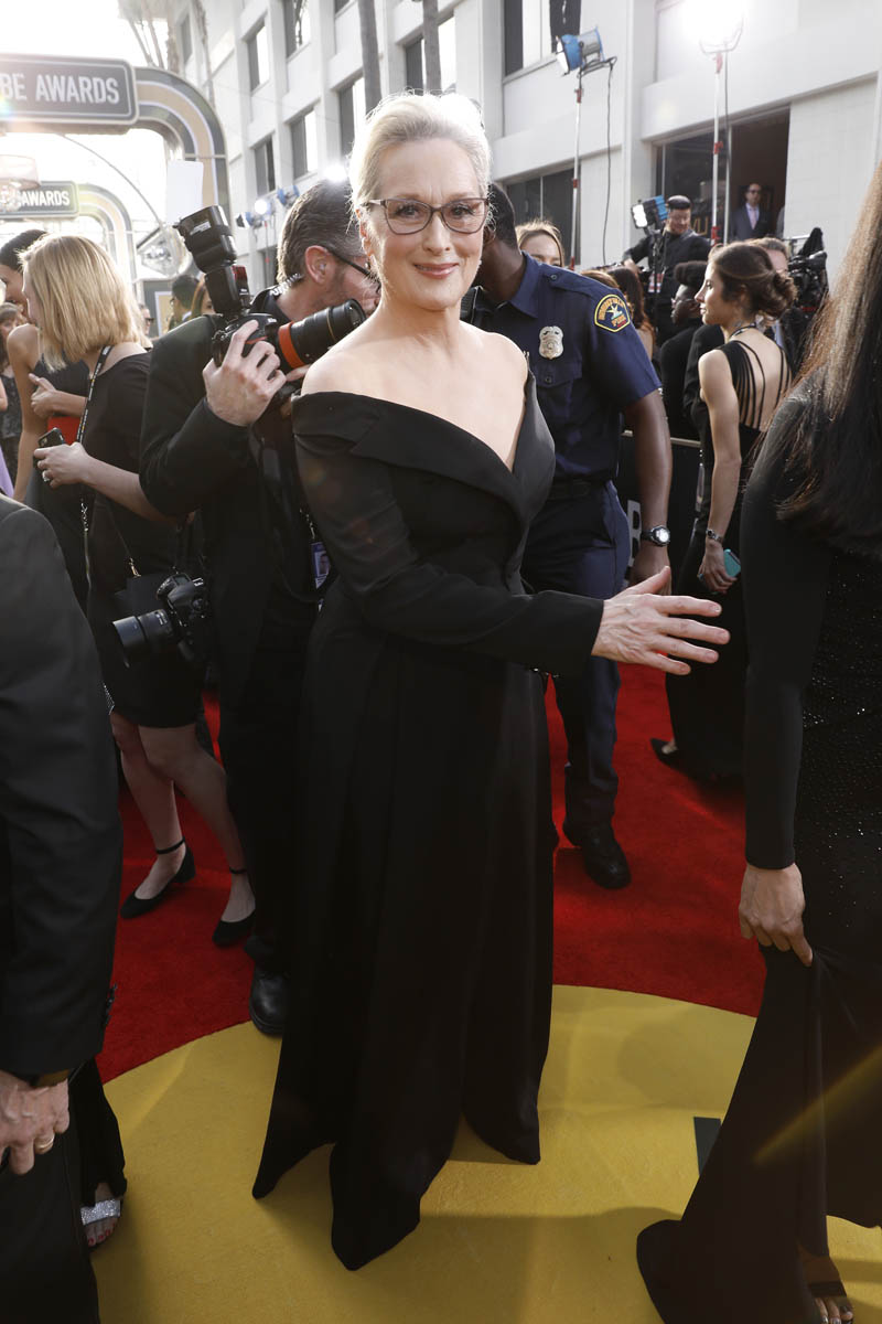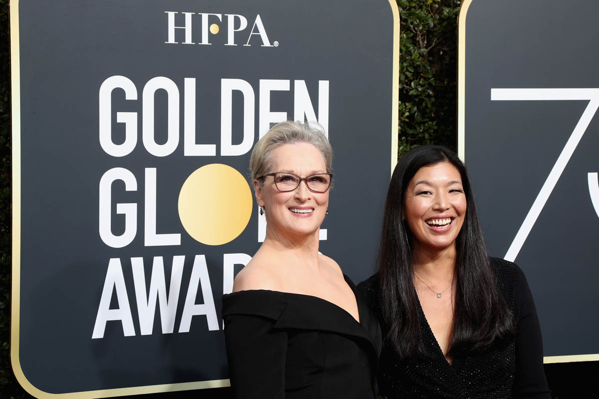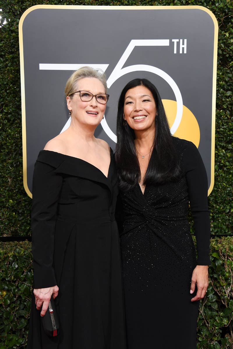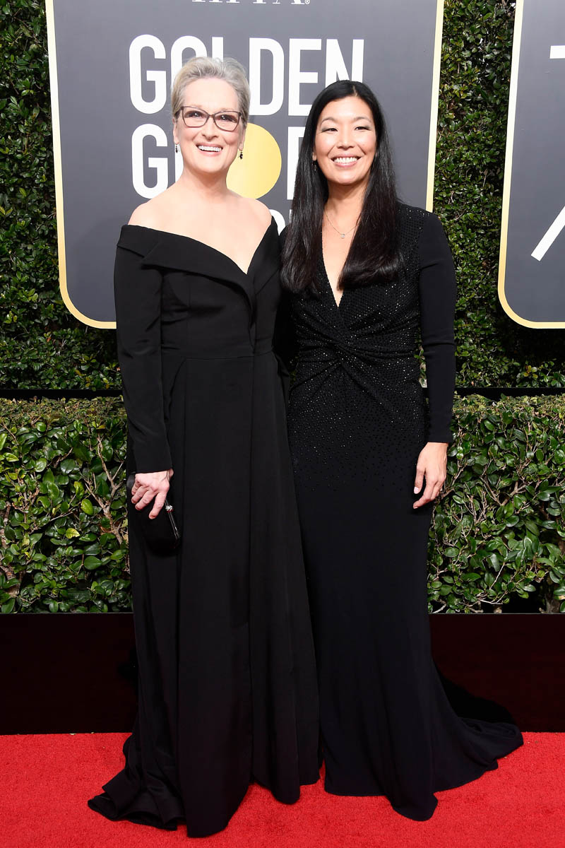 Last night, many of the biggest stars arrived muuuuuuch earlier than they normally do on the red carpet. As in two hours before the start of the show. They did it to honour the work of the many activists who were invited to accompany the celebrities down the red carpet. Meryl Streep, for example, was at the Golden Globes by 3pm PT/6pm ET. She was joined by Ai-Jen Poo, Director of the National Domestic Workers Alliance and Co-Director for the Caring Actress Generations Campaign. And it was amazing to see, to see these women highlighted and appreciated for their efforts. But, as the Fug Girls noted last night, it’s also OK to highlight the efforts of stylist and the designers who’ve donated their time and their creations and their ideas to the occasion. All of that is work too.