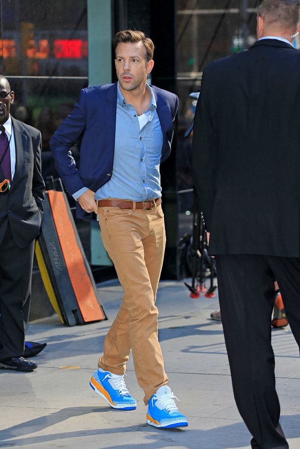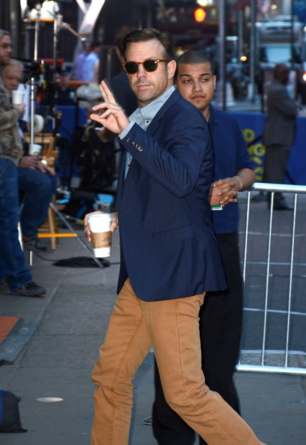 Attached – Sudeikis in New York today heading into Good Morning America to promote We’re The Millers.