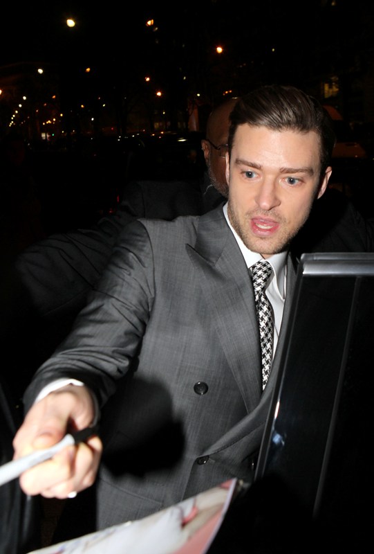 Justin Timberlake and his wife have been in Paris the last few days as he promotes his new album. Here he is arriving at a radio station and then at Roissy airport. At the 30 hour mark of our marathon post-Oscars work day and night, Duana and I threw down over my suggestion that Justin Timberlake should host the Oscars, following our joint rage at Seth MacFarlane’s misogyny.