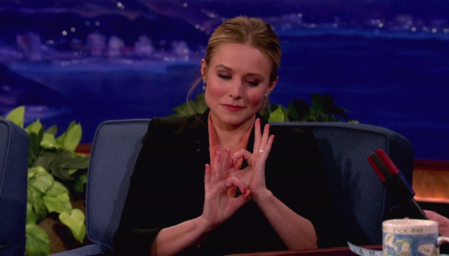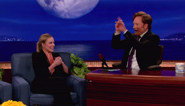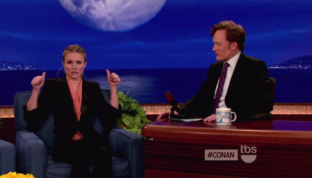 Attached - Kristen Bell on Conan last night.