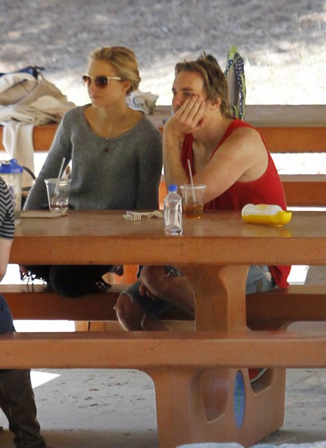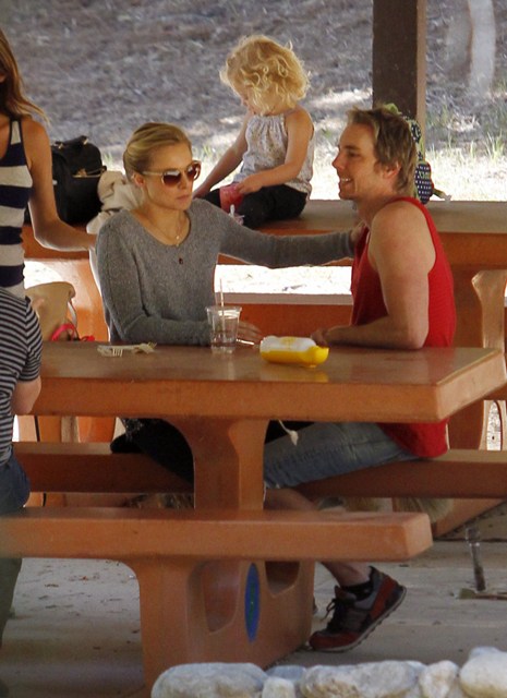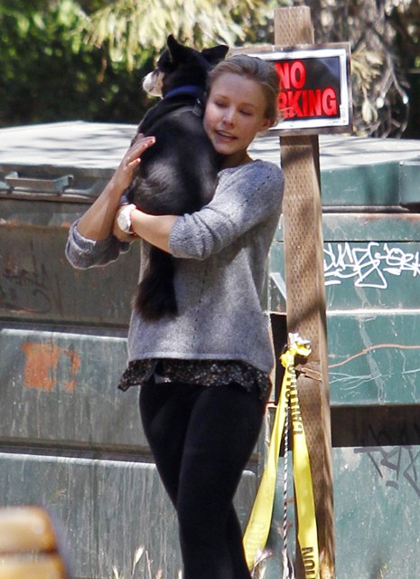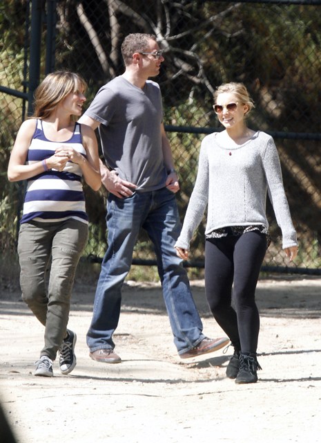 Attached - Kristen Bell with Dax Shepard at the park on the weekend.