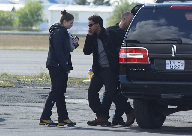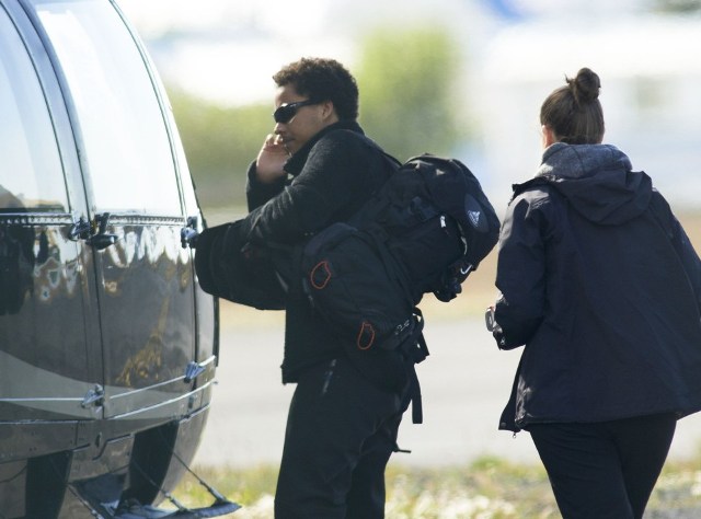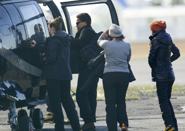 Here’s Connor Cruise boarding a helicopter in Iceland where Cruise has been shooting. Production is not expected to be delayed. Of course not. Whatever he is, he is a professional. And besides, he’s only complete when he’s on set, pretending to be someone else. That looks like Isabella Cruise in the toque but since there are no face shots, I don’t want to say for sure. What do you do if you’re Katie and Connor and Isabella show up to plead their dad’s case? Connor is said to be, um, pretty Scientologically solid. You know these Church people. They’ll try to break in however they can. Katie is in for a fight.