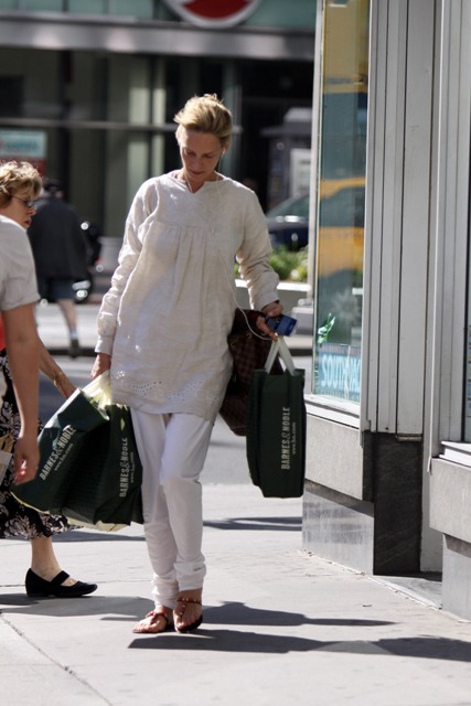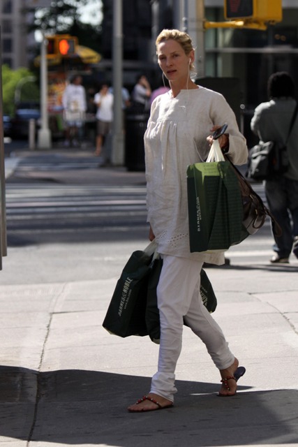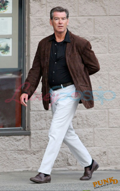 Here’s Uma last Friday shopping in New York, Pierce in Washington with his wife Keely a few days before, and a few of him in Vancouver in April.