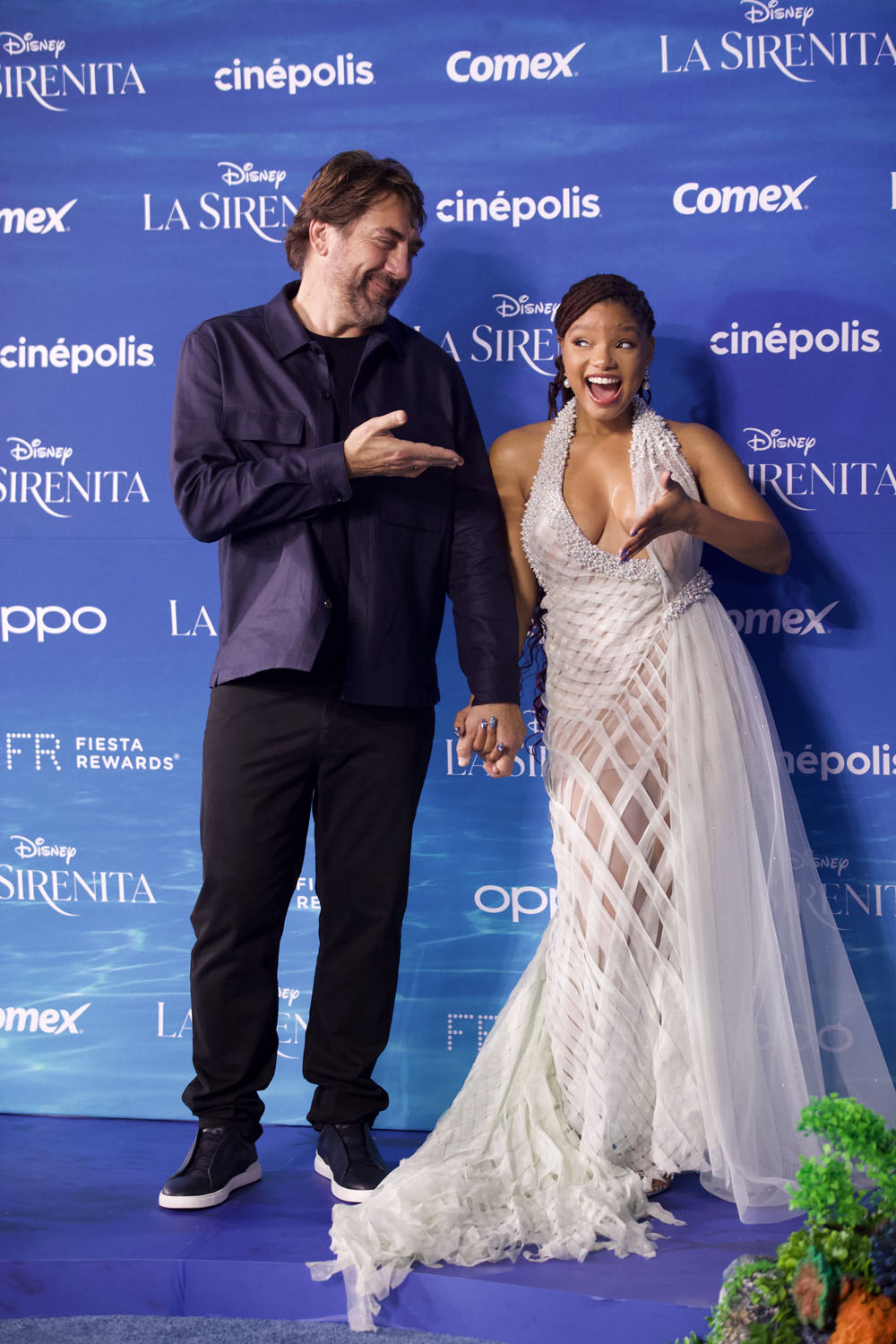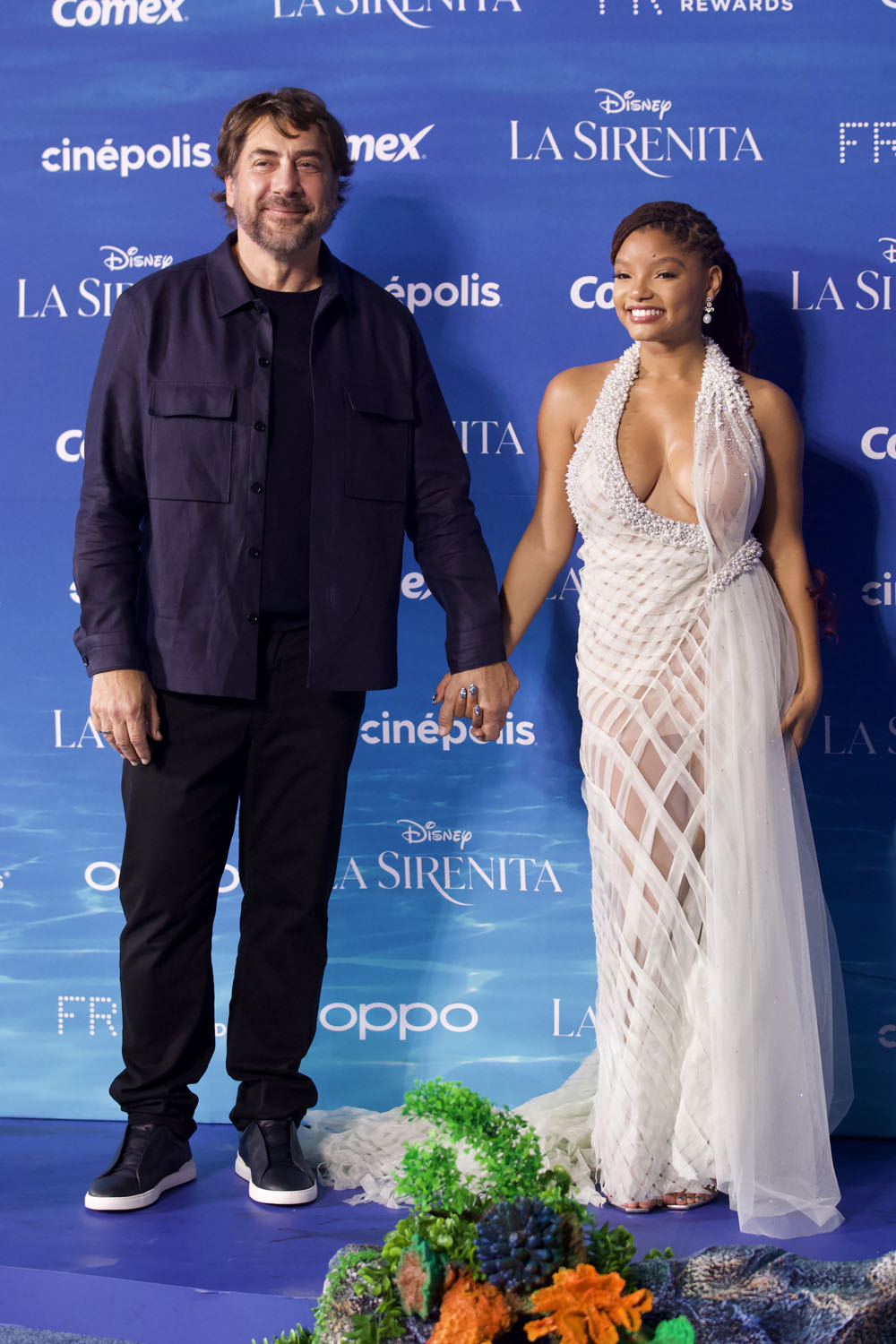Attached - Halle Bailey and Javier Bardem at the premiere of The Little Mermaid in Mexico City.