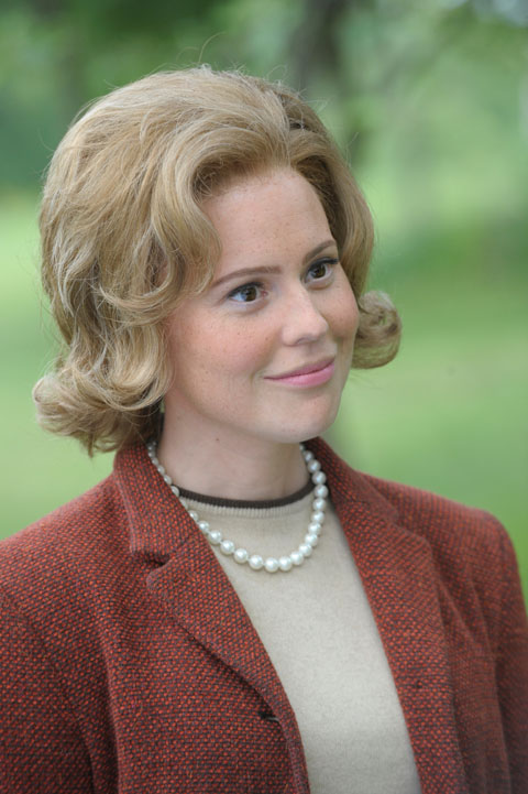 There’s a scene in which Katie’s Jackie has a confrontation with her mother who tells her Jack will never truly be hers… and she tries to summon the outrage, the indignation, and, well, I had to watch it several times, it gave me a lot of pleasure. It was like she couldn’t find her sunglasses. I promise you will love it. You will also love the interview she gives on election day when Jack is about to become president. It’s like her real life interviews when all she can say is amazing and wonderful and love over and over and over again. I can’t get enough of it.