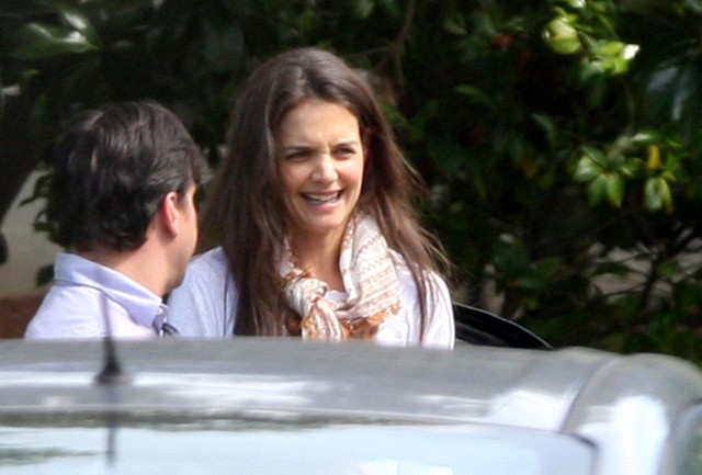 Here’s Katie leaving a meeting yesterday in Studio City. Before that though she was at the Scientology Celebrity Centre, getting updated or audited or cleansed or whatever it is that they call it. I wonder what there’s left to take away though. Seems like there might not be a whole lot left.