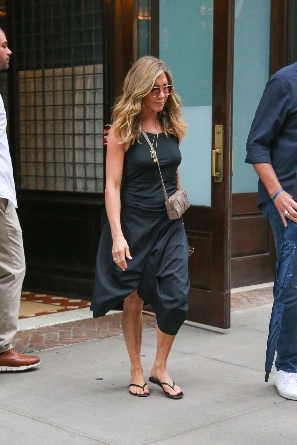 Jennifer Aniston’s relationship with Jim Curtis, the hypnotist, has been public for almost a month now, after they were seen on holiday in Mallorca with Jason Bateman and Amanda Anka. This week they’ve been in New York, and when I say “they”, I mean all of them – Jen, Jim, Jason, and Amanda. Last night they went out for dinner with Jason and Amanda’s children.