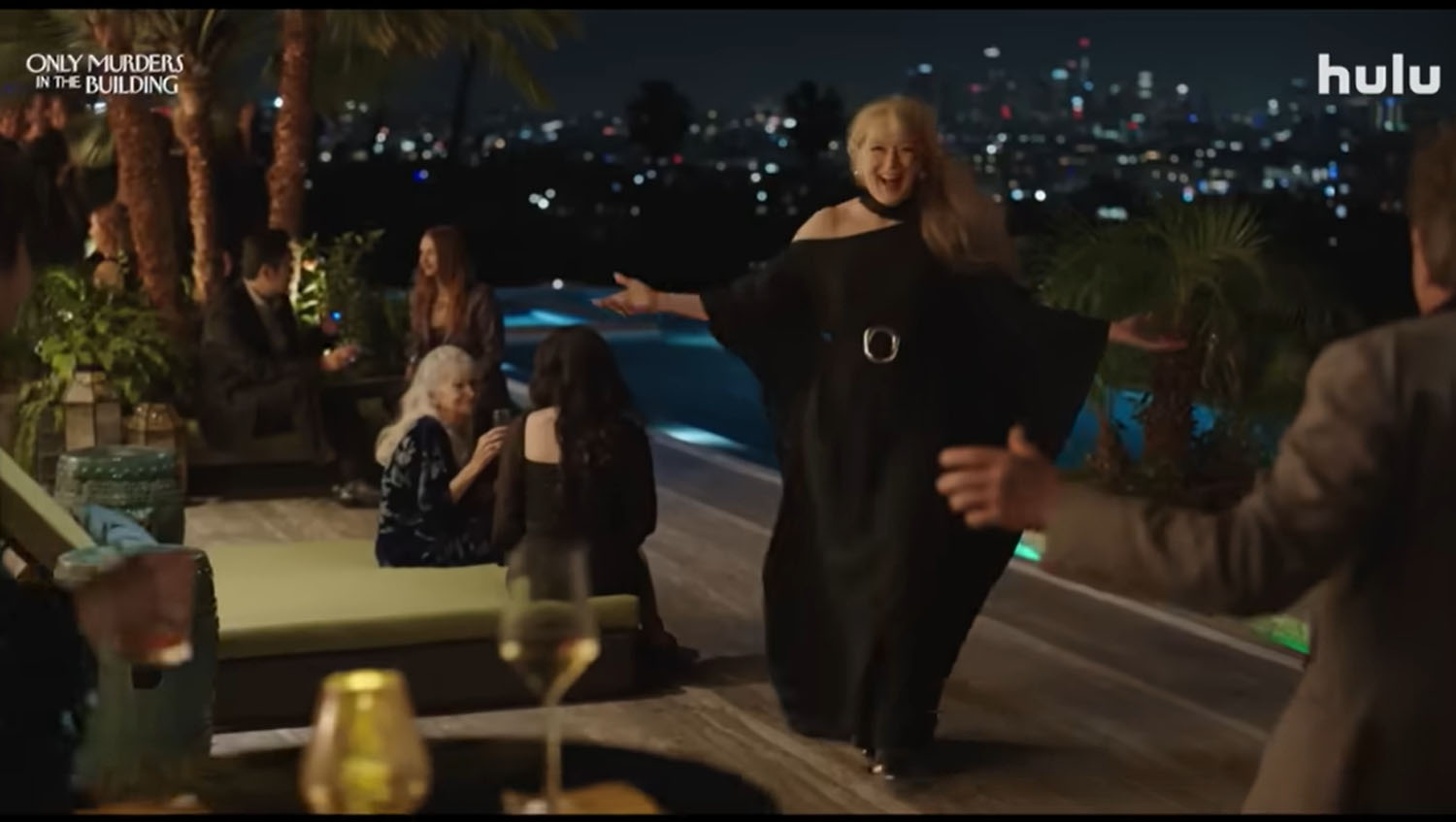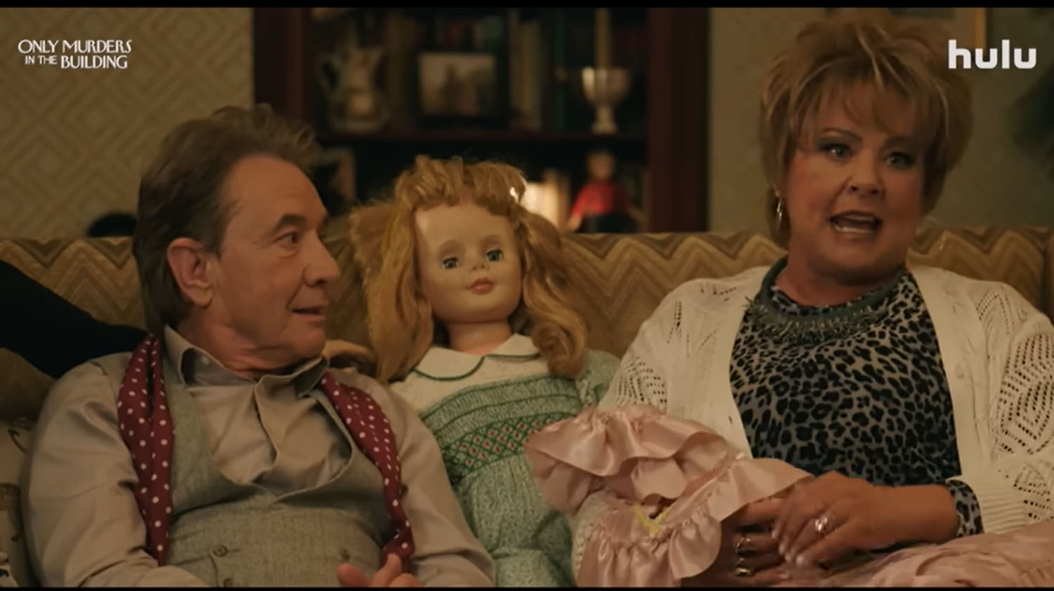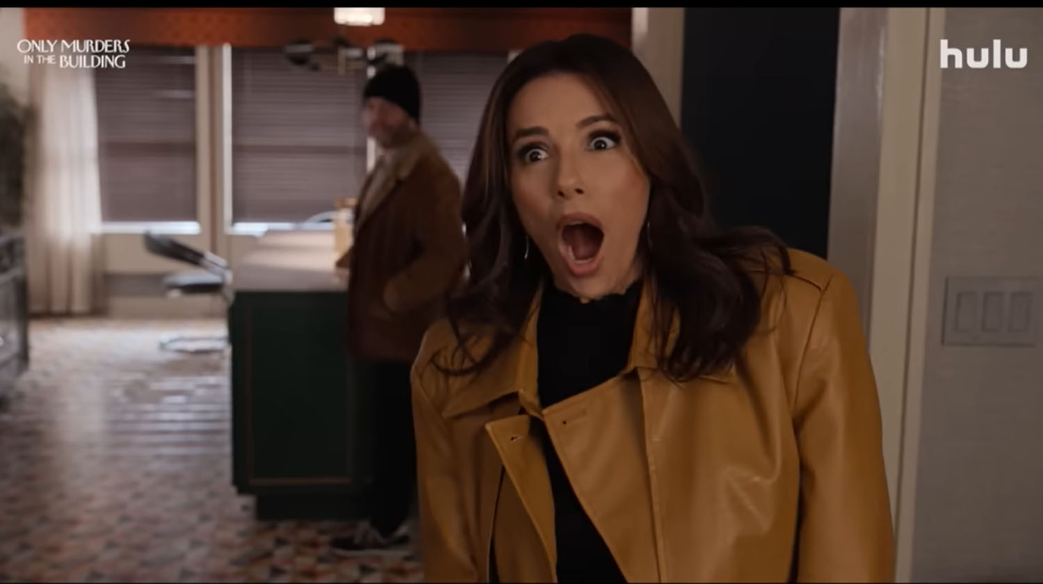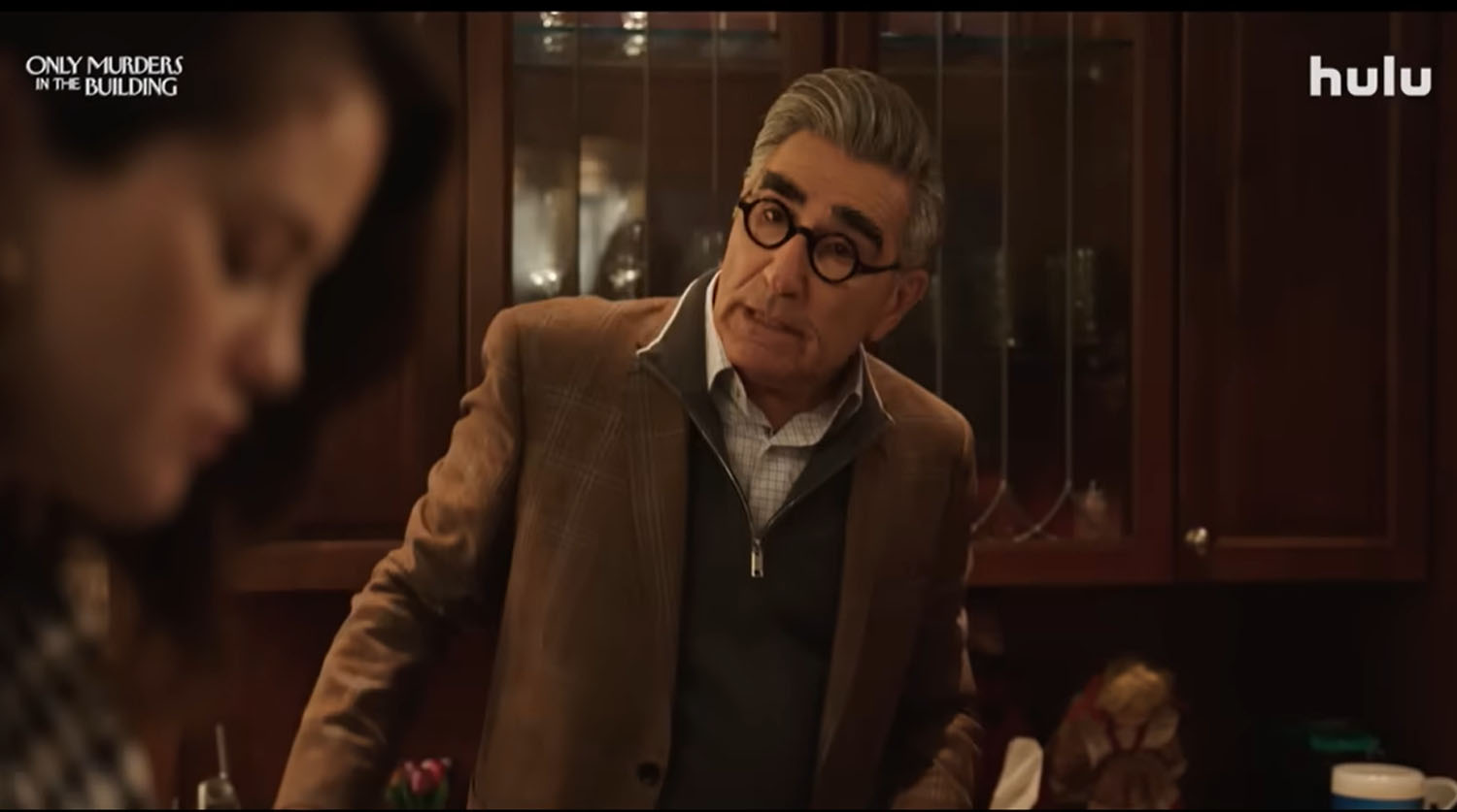Which is why the guest casting for season four is so good. After their podcast breaks out, Mabel, Charles, and Oliver are approached about adapting their podcast into a film. Eugene Levy, Eva Longoria, and Zach Galifianakis play (versions of) themselves as the film actors cast to play the amateur sleuths in the movie. But then there is the murder, this time of Charles’s stunt double and friend, Sazz Pataki (Jane Lynch), which sends the intrepid trio to the other side of The Arconia to interview west wing residents. These include Kumail Nanjiani and Richard Kind—how is Richard Kind ONLY NOW appearing in this show?!—plus there is Molly Shannon as a movie executive, Melissa McCarthy as Charles’s sister, and Meryl Streep returning as Loretta Durkin.