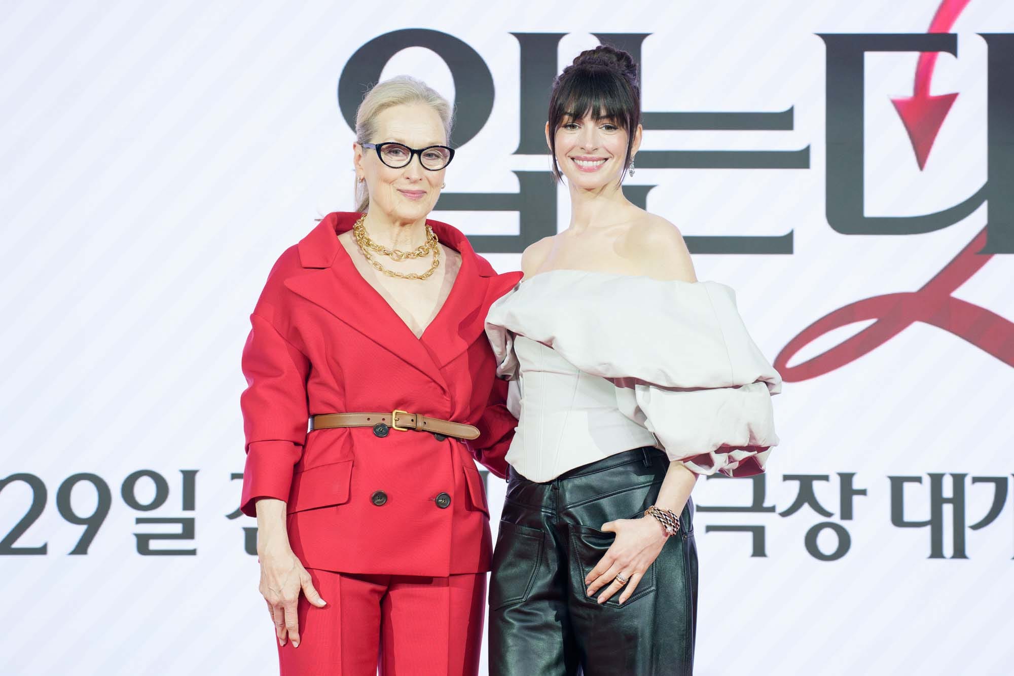Following their tour stop in Japan earlier this week, Meryl Streep and Anne Hathaway are now in Korea. And, obviously, there were multiple outfits.