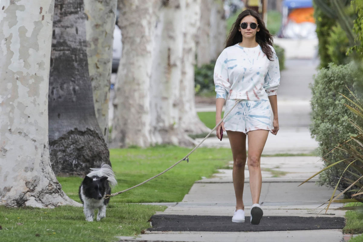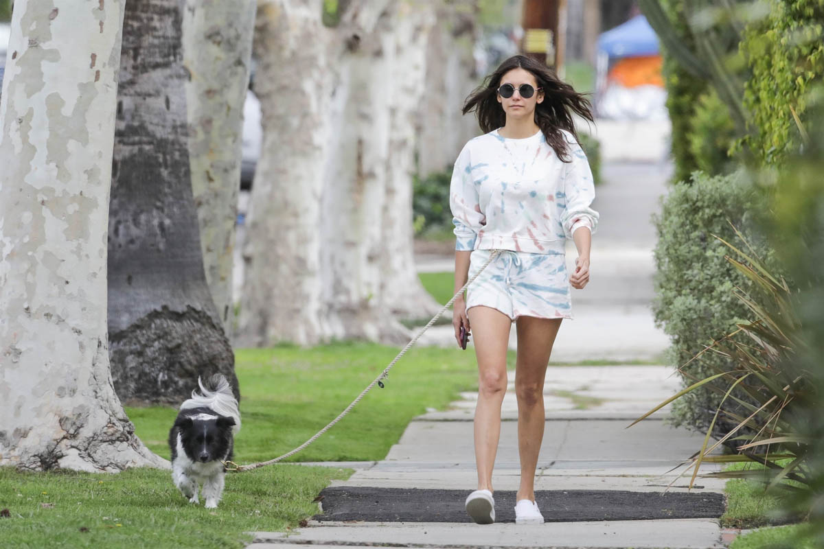 Here's Nina Dobrev out for a walk with her dog yesterday in LA.