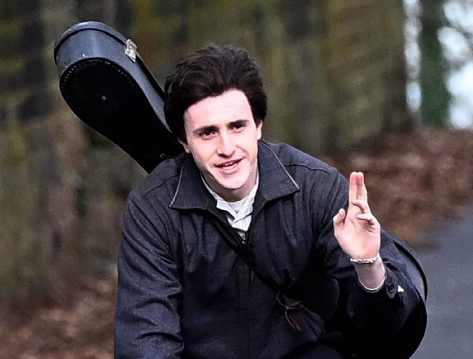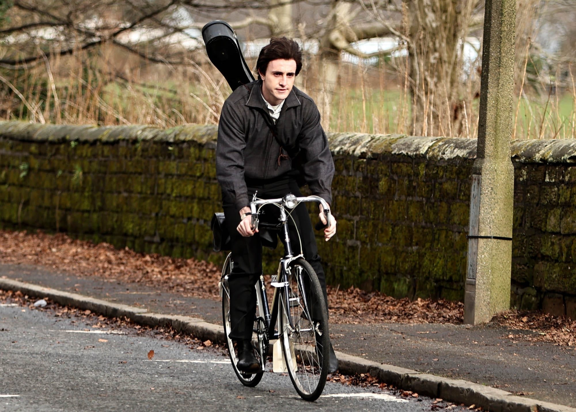 Paul Mescal was seen on the set of one of Sam Mendes’s four Beatles biopics today in Liverpool, shooting a scene involving Paul McCartney on a bike with his guitar on his back. And wearing a dark brown wig that’s obviously a wig – that hairline, LOL – but is also holding up well in the wind. The colour is a giveaway too, the shade looks right out of the box. Curious to see how this will read in theatres.