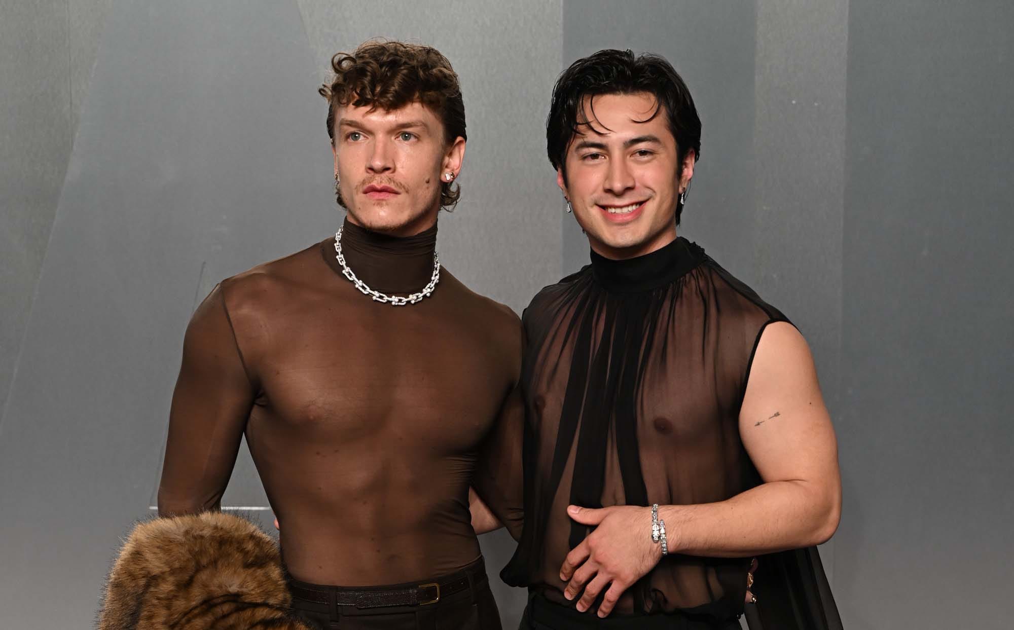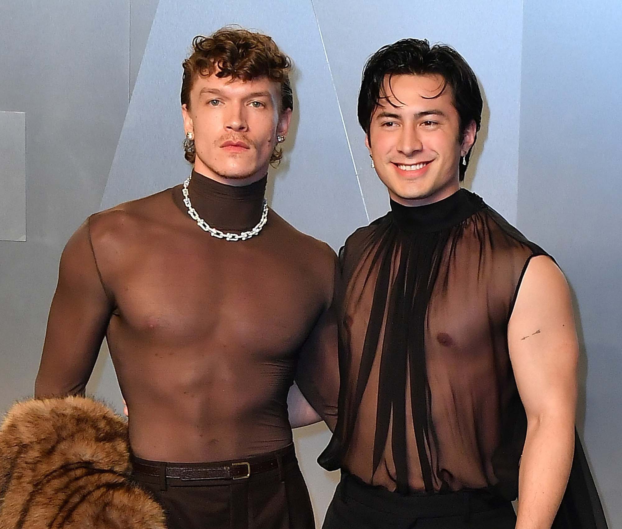 Connor Storrie and Hudson Williams attend the 2026 Vanity Fair Oscar Party Hosted By Mark Guiducci at Los Angeles County Museum of Art on March 15, 2026 in Los Angeles