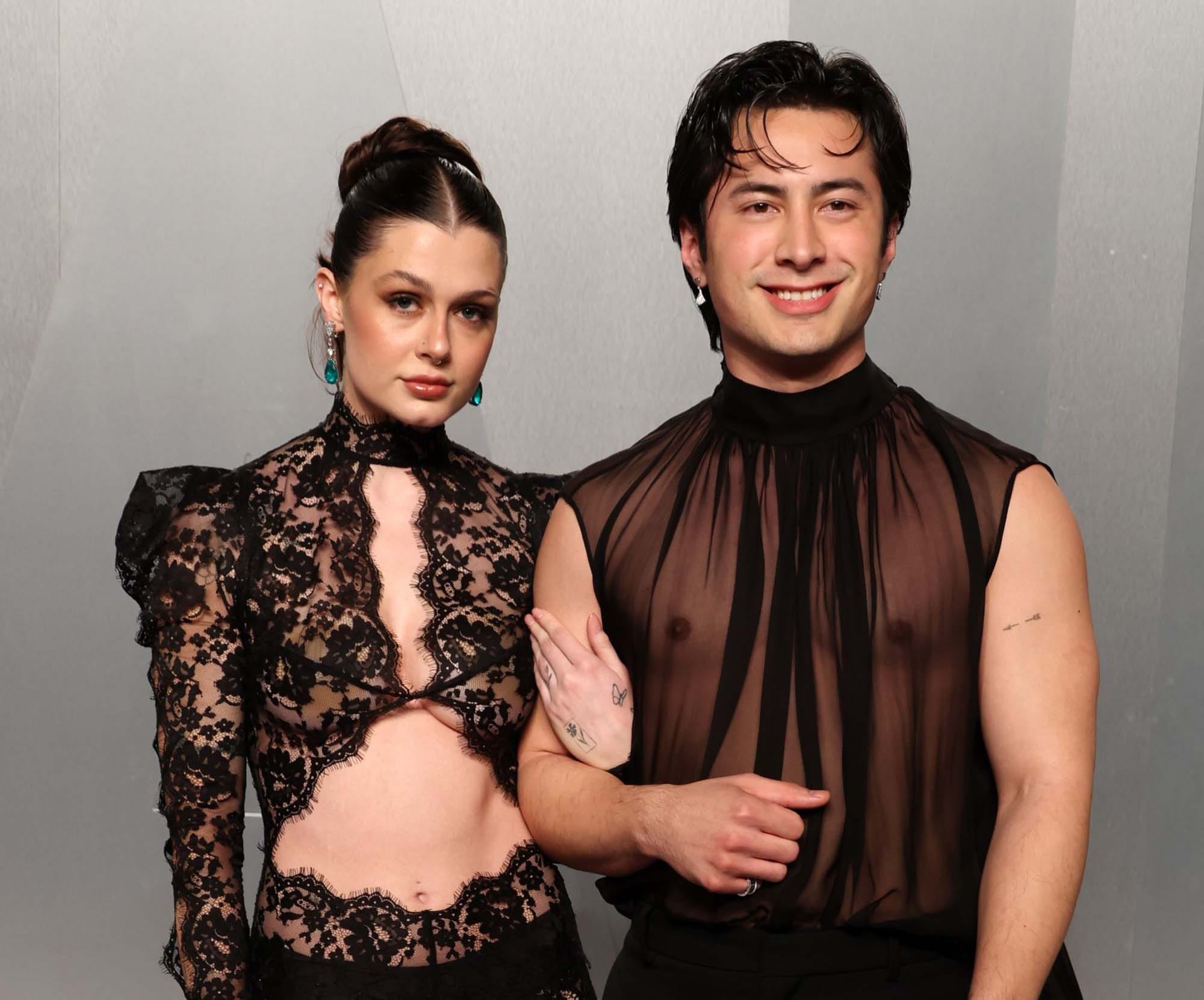 Perhaps he’s amused that we’ll all eventually figure out he and Connor Storrie are participating in tone-play – Hudson’s look is entirely black, Connor’s is brown – or he’s already thinking about the next inscrutable pic he’s about to take.
