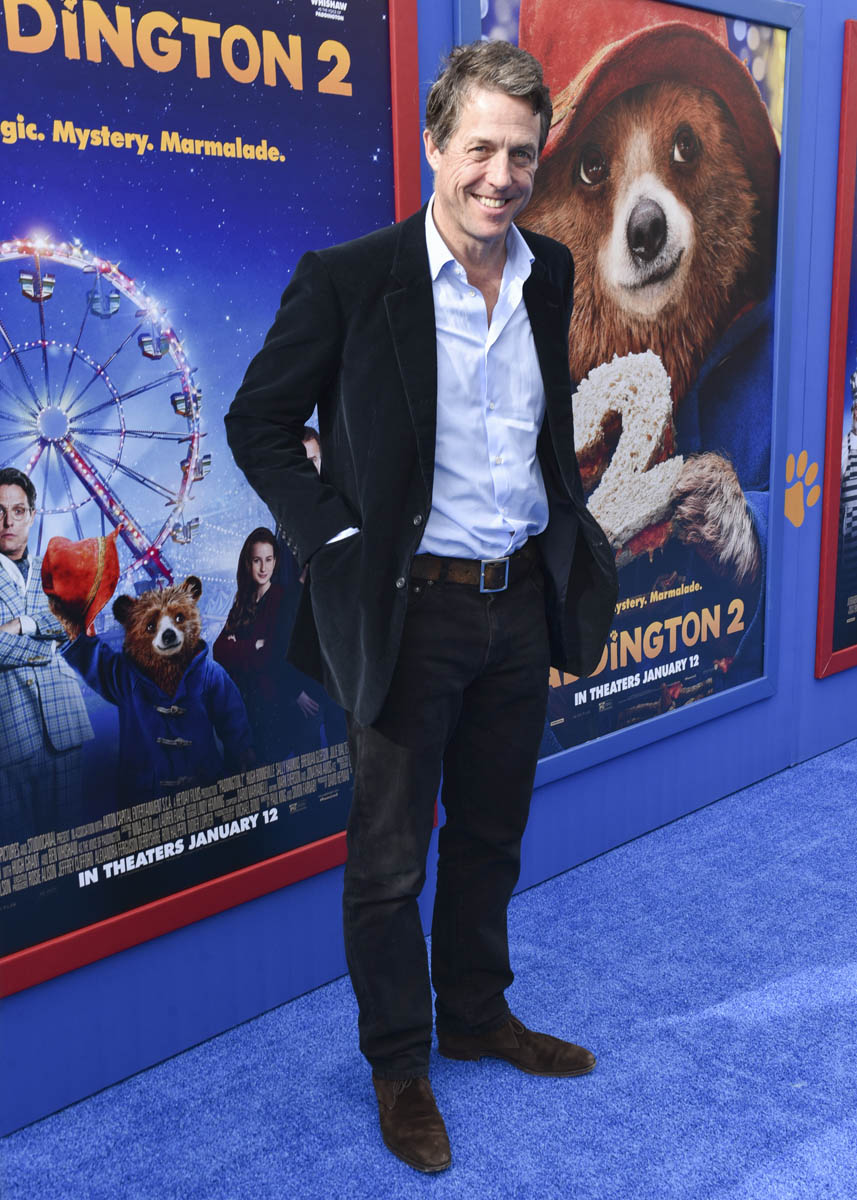 Alongside all those other actors in all those very serious projects. And he has to show up in a tuxedo that night and walk the carpet repping Paddington 2. Not that there’s anything wrong with Paddington or Paddington 2. I loved Paddington. Thought it was a really fun movie. But there is no one who hates himself more than Hugh Grant. Hugh Grant is chronically misanthropic (is that redundant?) and generally impatient and crusty with life and all its attendant pleasures. He couldn’t even present at the Globes that night without sighing in between each and every sentence.