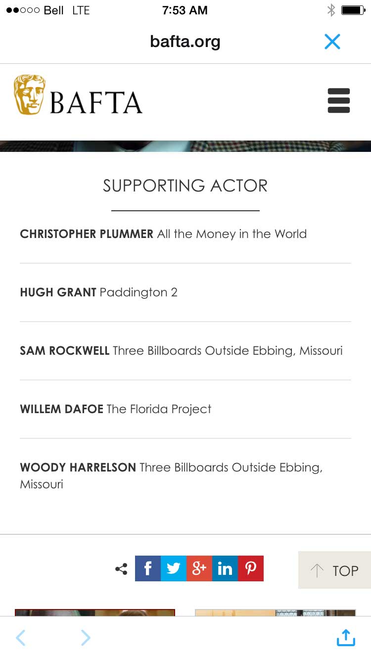 Duana wrote the Sarah Jessica Parker/Hugh Grant Golden Globes post yesterday. But, as you may have read, it turned into a Hugh Grant-only post, not because she isn’t into SJP (she is) but because, well, it could really only have been about Hugh Grant. Hugh was introduced as the “star of Paddington Bear 2” (not the actual title of the movie which is Paddington 2). Which became Duana’s favourite thing about the Globes. And the delight has carried over to today because the BAFTA nominations have just been announced. Check it out, in the Best Supporting Actor category: