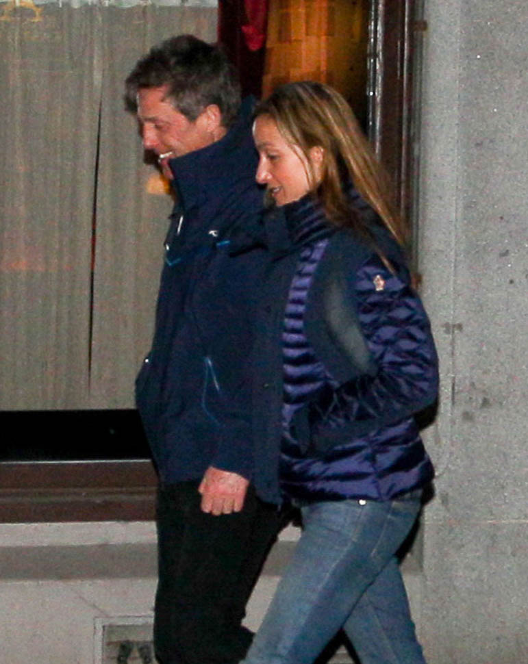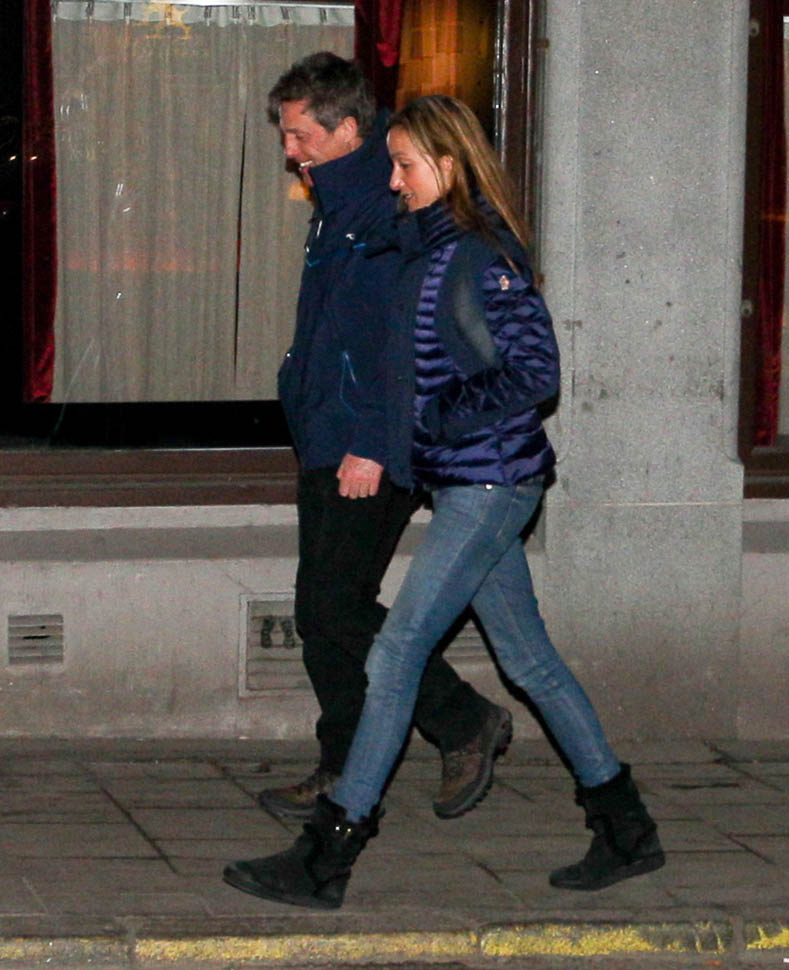 Hugh Grant was photographed the other day in Stockholm having dinner and then some drinks with Anna Eberstein. Then they went back to the hotel. Eberstein is the mother of his son. He has two sons. He has three children in total. First a daughter with Tinglan Hong. Then Hong and Eberstein were pregnant at the same time with his boys.