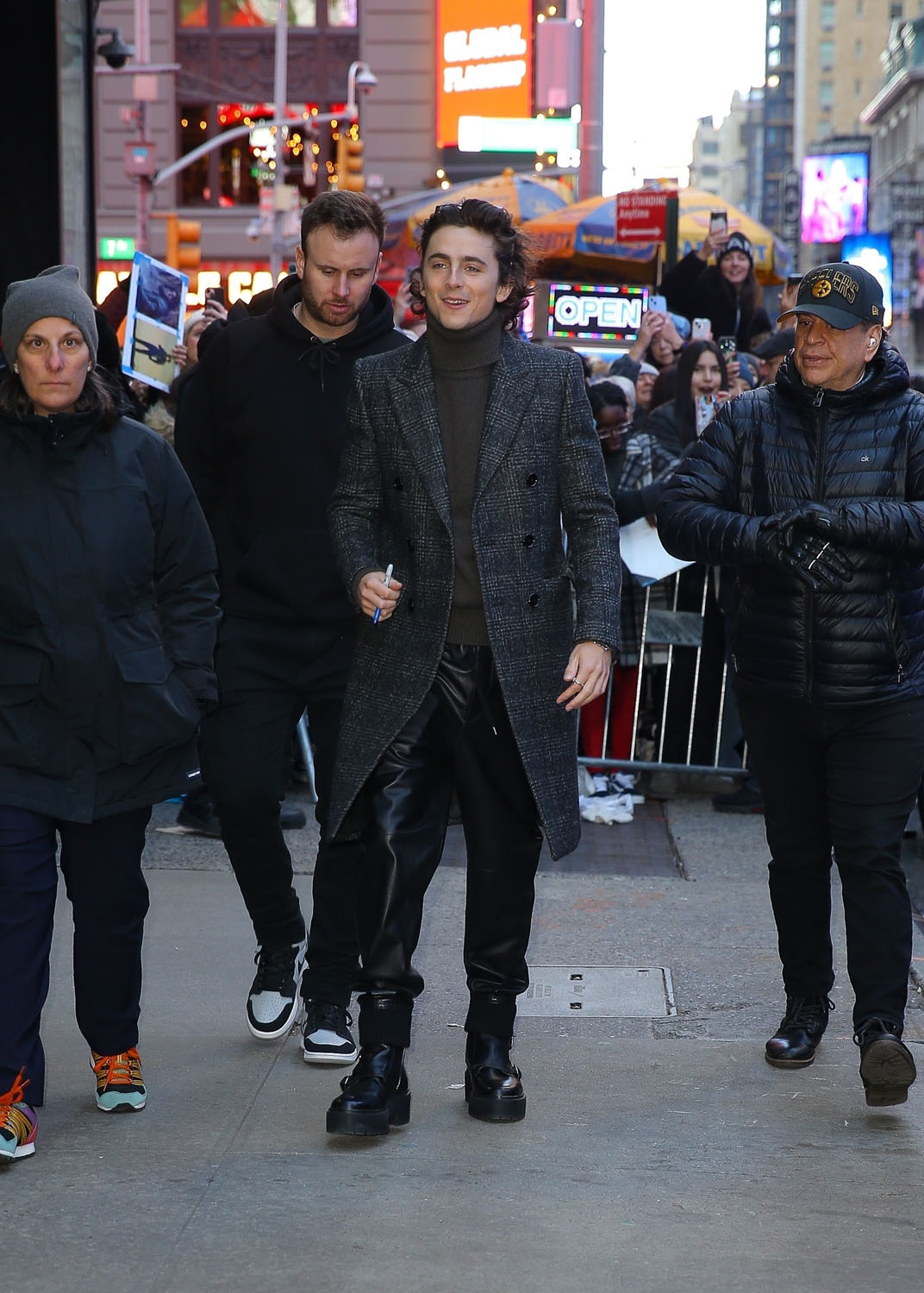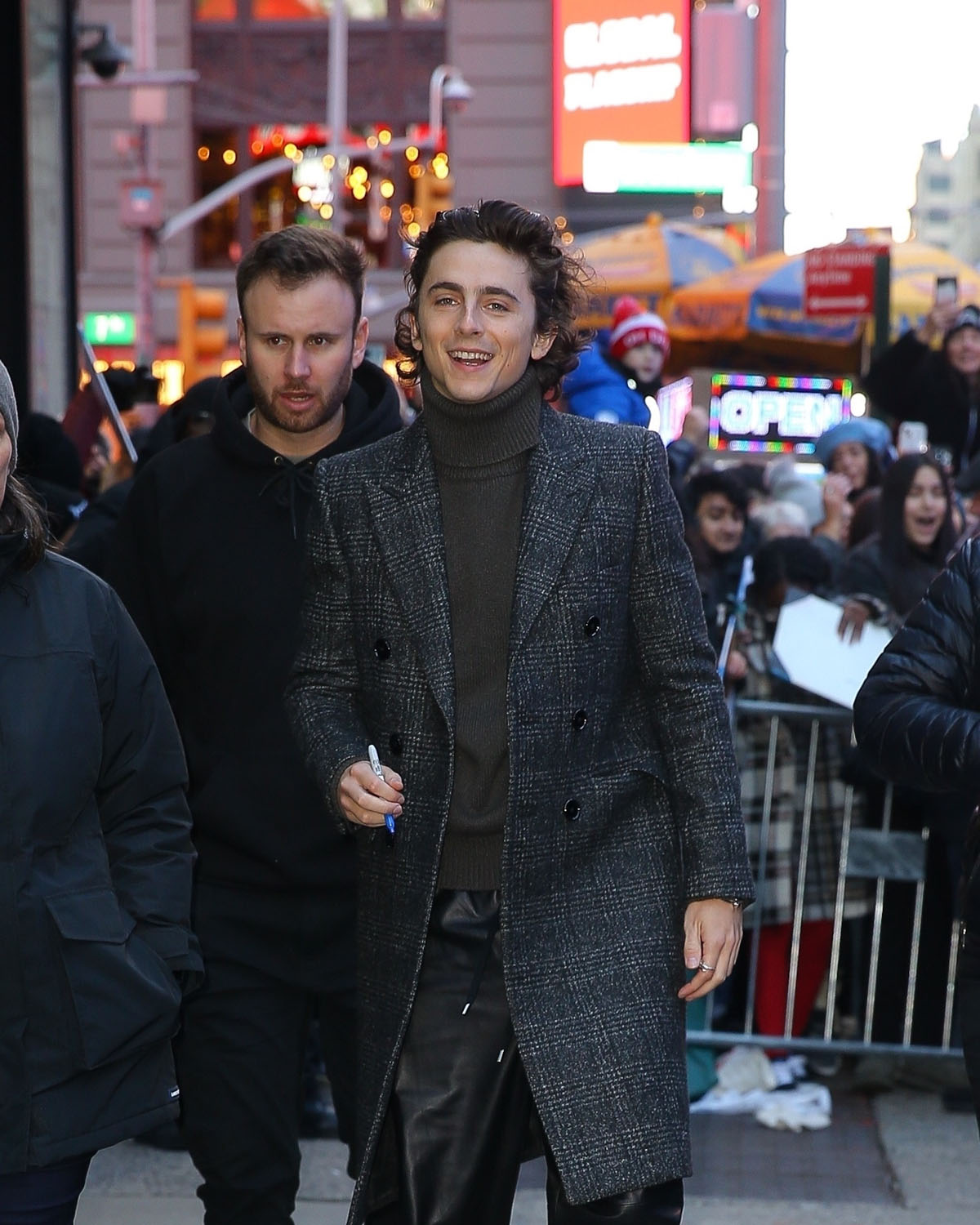 This is the power of BLACKPINK. They can charm the most notorious curmudgeon. When the conversation turns to Timothée Chalamet, however, salty Hugh is back and there’s a whole bit near the end of the interview when Timmy makes a cameo where Hugh mocks his Frenchness and whatever and I’m really only telling you this so that I can show you these shots of Timmy at Good Morning America yesterday. Timmy has been back and forth and everywhere these last few weeks on promotion.