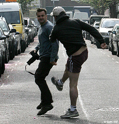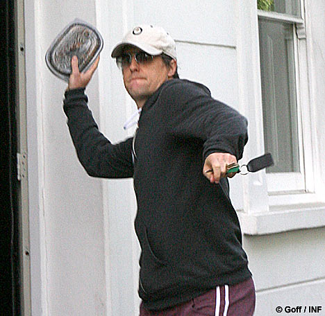 Hugh has been arrested, allegedly for assaulting a pappy. So he’s followed around by a photographer the other day, he’s not happy about it, when the pappy continues, he launches a container full of baked beans at the man before kicking him in the groin, all the while shouting: