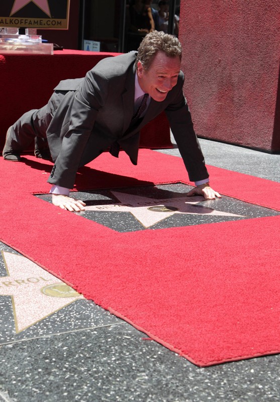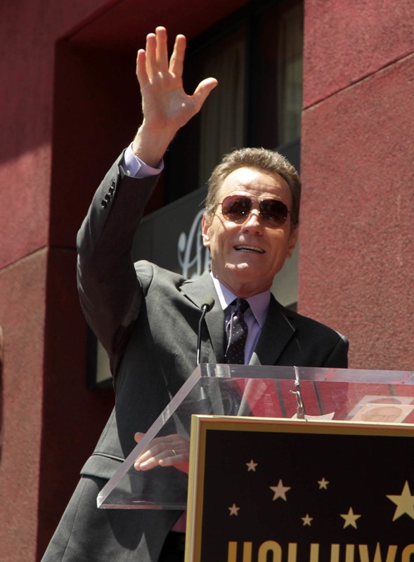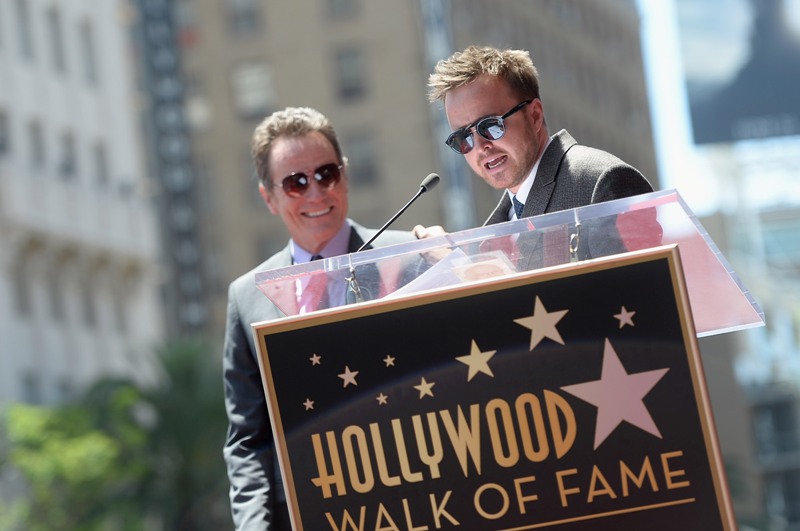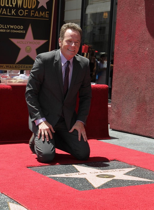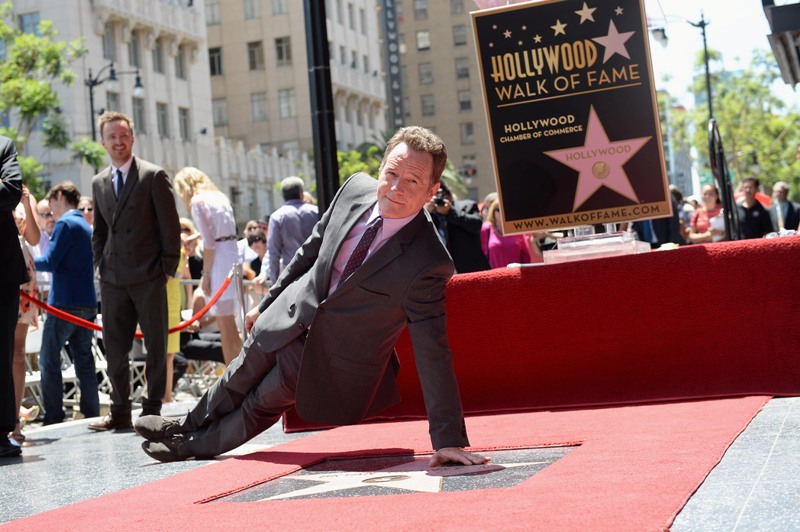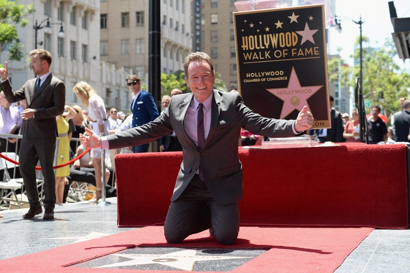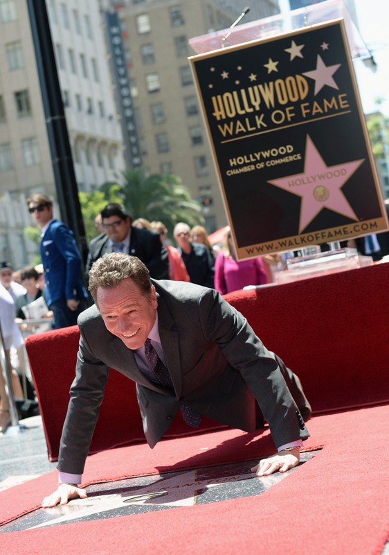 And here’s Bryan Cranston getting his star on the Walk of Fame, supported by his Breaking Bad costars Aaron Paul, who looks happier for Cranston than he would for himself, Anna Gunn, R.J. Mitte, and Bob Odenkirk. Breaking Bad resumes in a few weeks. Maria will be recapping again.