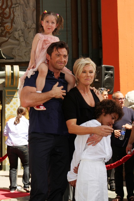 Hugh was joined by his wife and his children as he continues his Wolverine blitz that is running alongside the Star Trek promotional tour. The Star Trek cast, after a press trip through Europe, arrived back in LA yesterday. More on that later.