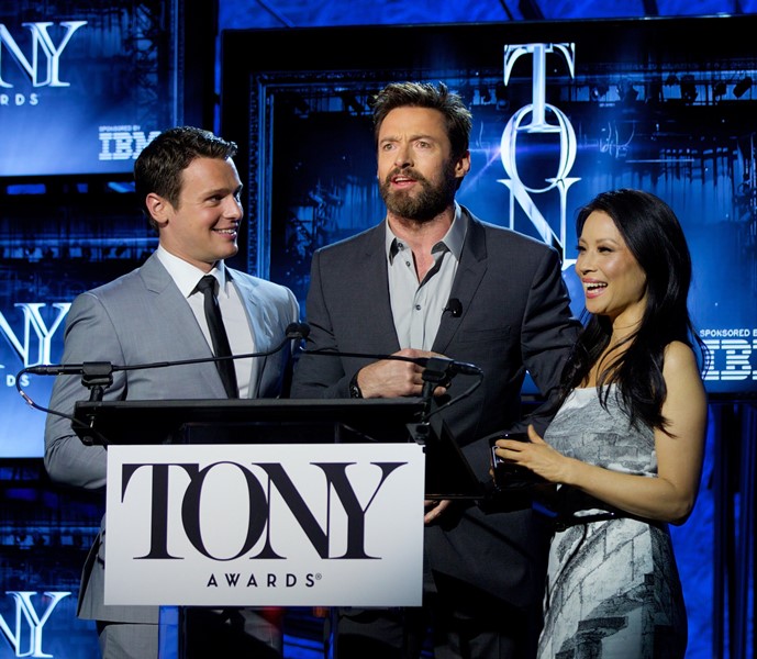 The Tony Award nominations were announced today in New York by Lucy Liu and Jonathan Groff. But Hugh Jackman made an appearance because he’ll be returning as the show’s host on June 8th. This will come right after an extensive promotional tour for X-Men: Days Of Future Past. Because he WORKS. His ass off. And he’s passionate about that work, every single time.